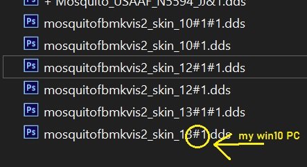 spudkopf Posted July 1, 2022 Author Posted July 1, 2022 2 hours ago, jollyjack said: Hi spudkopf, i get errors with your mosquito skins (in Viewer.exe 4.706b). #1 changes to ?1 and so on I did not test other skins than the Mosquito yet .. Can it be that language settings have something to to changing the ## type? They seem different: I set my PC to english USA: files downloaded from you: When i change the ## symbols manually all is well. Well not sure what's going on there, just downloaded the files myself and the file names where the same as the originals, so it could be a language thing? This type of skin naming thing with the # is kind of a new thing (I first noticed on the Hurricane I believe) and probably has something to do with the multiple skin method now in use. Here's a link to the Mossie files zipped, to help you out. MosquitoFBMkVIs2.zip This is more or less a one off, as there are simply now too many of my corrected skins to retrospectively go back and ZIP them all again, and storage space (and time for that matter) is already at a premium as well. Cheers