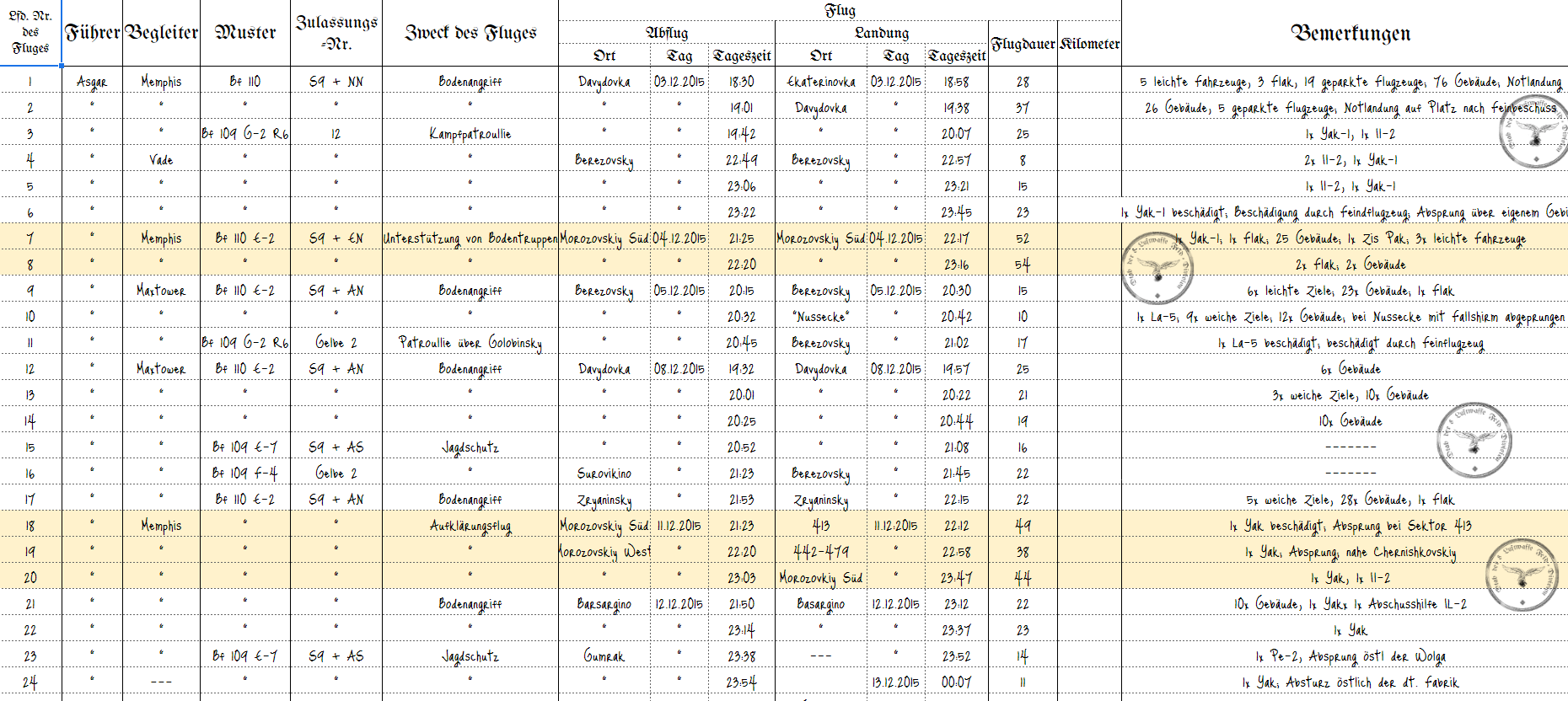 HBB*Hunger Posted March 14, 2022 Posted March 14, 2022 We did exactly what you do now for about 2 years at "Hunger's Bunte Bühne". We flew about 200 hand crafted COOP missions from 1942 to 1945. We also used our website to track each pilots missions, victories, storys and medals. Sadly, the website is down today. If I had the time, I would do it again emedeately. Wish you guys all the best! PS: The Logo of Hunger's Bunte Bühne was Fang den Hut, like your avatar 1