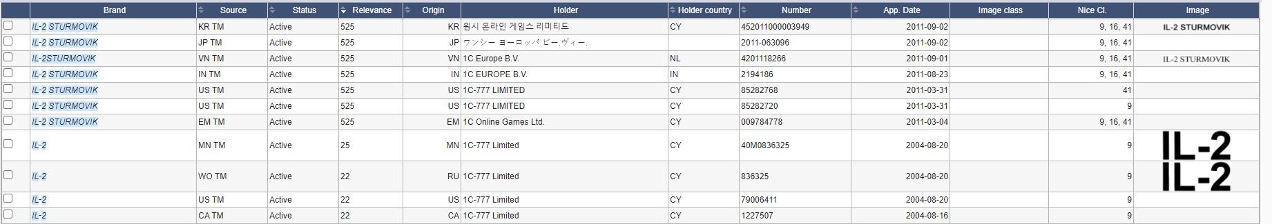 343KKT_Kintaro Posted March 28, 2022 Posted March 28, 2022 5 hours ago, Mitthrawnuruodo said: A search of US trademarks shows that 1C-777 does own the Il-2 Sturmovik name. Thank you Mitthrawnuruodo. I did some further research in the equivalent European bureau of patents, and found that "IL-2 Sturmovik" is a registered trademark in the registration offices of countries in the EU and outside the EU like the UK, the USA, Thailand, Brazil, India, China and Corea. A few examples as follows: - The American registration of "IL-2 Sturmovik" is for 1C-777, based in Cyprus. - The Chinese registration is for 1C EUROPE B.V, based in the Netherlands. - The British registration of the brand is for 1C Online Games Ltd., based in Cyprus (not the same address as 1C-777 though). - India and Brazil bureaus keep the brand for 1C EUROPE B.V, based in the Netherlands. Different companies in different countries, all of them holding the same trademark, funny uh? My point is that 1C-777 doesn't own the trademark and that the level of property of these companies must be something like "granted permission for doing business with"... or something similar.