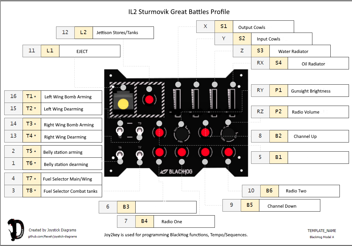 Hoss Posted March 28, 2022 Posted March 28, 2022 (edited) What ever drive it's loaded in/IL2Great Battles/data/input folder, save he entire thing. I have a TMWH HOTAS, I use TARGET GUI for IL2, (LCTL + E) for bail out. Instead of joy1_button4 which is a DX command. The software is really very easy to use. I can't stress reading the manual for TARGET, it will explain how to use it. I use TARGET SCRIPT for DCS, I use the 128 button hack that will not work with IL2, it can only see 60 dx commands. Spoiler I also have a BlackHog Explorer I use for six more axis and 16 more button presses, I use Joy2Key to program it. This is an old profile, and there are some mistakes on it, the current one is not much different, you will see I use the IN/OUT function on the stick that gives me two layers of modified commands. On the Throttle I use UP/MIDDLE/DOWN layers to give three more layers of modifiers to the buttons. And if need be I can use modifiers in DCS to make even more. With TARGET GUI I can also do SEQUENCE commands, I hit a button it does one thing, hit it again and it does something else. CHAIN commands, you hit the button and it will do a series of commands. TEMPO commands are long/short key presses, I have not found a way to do those with GUI, but in my DCS SCRIPT profile I only have TEMPO commands that are in the script. Hoss Edited March 28, 2022 by Hoss