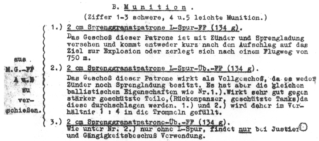 FTC_Karaya Posted April 12, 2022 Posted April 12, 2022 They are the same, yes. The MG FF essentially fired only 3 different types of ammo, all of which had a projectile weight of 134g. I dont know why we still have these redundant rounds. It would be great if these could be disposed of at one point. Maybe @Buzzsaw can tell us the reasoning behind this? In the game 2 of the 3 available ammo types are incorrectly named. Their actual names were as follows: Sprenggranatpatrone L-Spur-FF, same as the "SprGr.Patr. L'Spur" Sprenggranatpatrone L-Spur-Üb.-FF, which corresponds to the ingame "Pzgr.Patr. L'Spur" Sprenggranatpatrone Üb.-FF, which corresponds to the ingame "Pzgr.Patr. FF" The thing with the MG FF was that there were no purpose built AP or Ball rounds, just the HE round with slight modifications. The "Üb" rounds were essentially the same as the normal Sprenggranatpatrone but carried neither a fuze nor the explosive filler, so acted like Ball rounds. I can only speculate as to why this was but I guess the MG FF only represented a stopgap to get production going until the definitive MG FF/M and its ammunition types were ready. The FF and FF/M were as good as identical, differing only in a couple parts and one could be built into the other. Their ammunition was not interchangeable however. 2 1