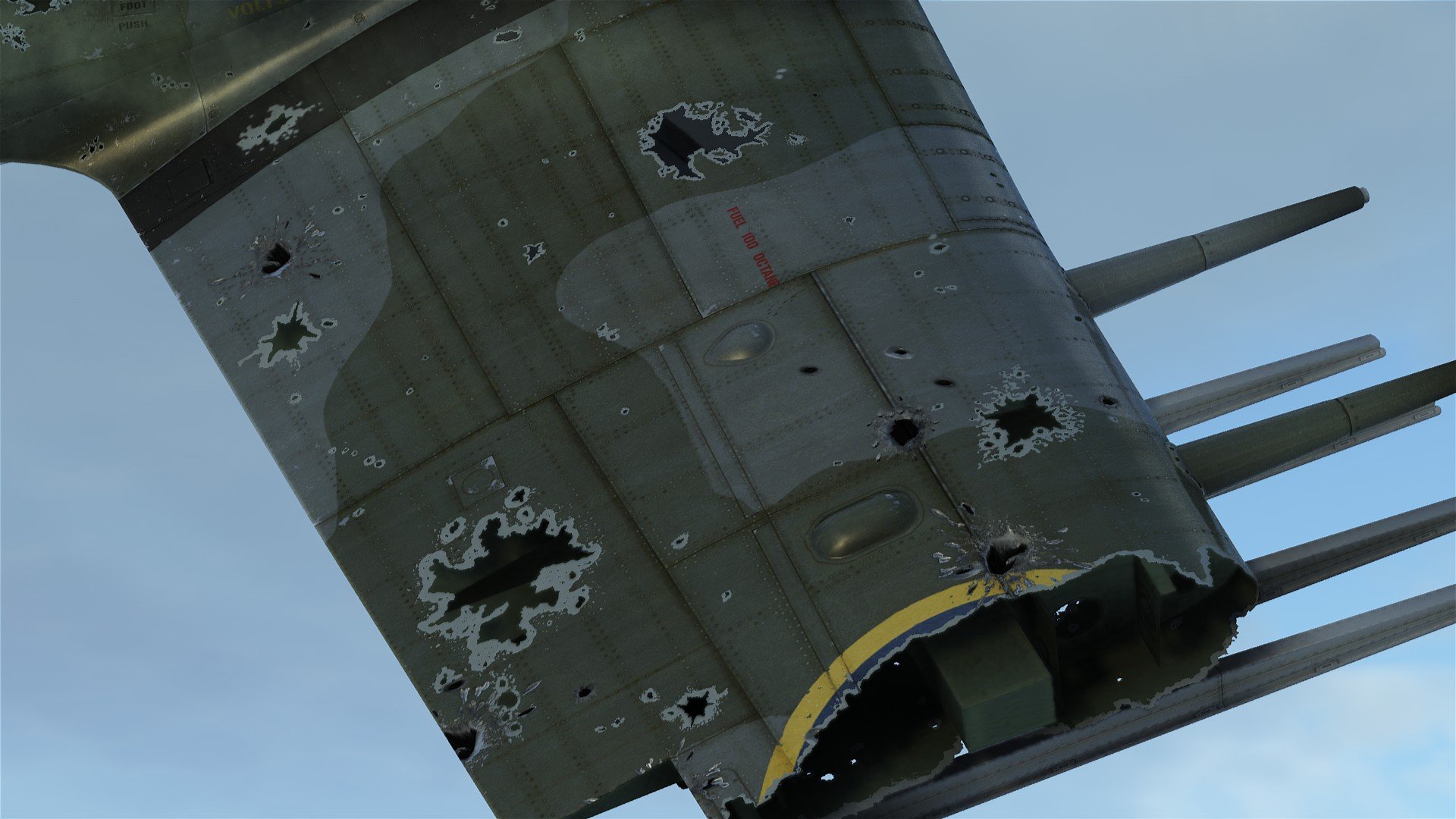 oc2209 Posted April 26, 2022 Posted April 26, 2022 5 hours ago, Avimimus said: Jason mentioned once that there are a few aircraft which could do with updated underlying damage textures. I found this was particularly noticeable with the Ju-88C-6a - it has the updated DVD system but the damage textures from the original Ju-88. This makes it almost impossible to see DVD hits on the rear fuselauge. I hadn't even noticed the C got DVD. Thanks for mentioning it. As @1PL-Husar-1Esk also mentioned above, the Ju-88's old damage decals are really large and dense and it's very easy to miss DVD impacts. Here's a couple screens of .50 holes from a P-47: Spoiler Spoiler And here's a Russian 37mm HE impact just beneath the starboard rear machine gun barrel: Spoiler The DVD system looks best on the P-51B, since that, for some reason, has less of the original P-51's old damage decals.