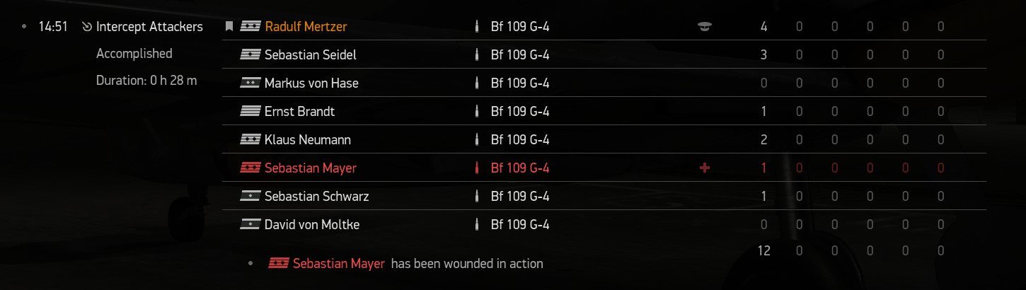 1/JSpan_Wind75 Posted July 21, 2022 Author Posted July 21, 2022 17 hours ago, Ram399 said: The skill of your AI wingmen corresponds directly to their experience level. If you commit to keeping them alive as best you can and they'll start pulling their own weight, I assure you. (But it also helps to always stay on the mission goal in order to avoid the occasional pacifist pilot conundrum.) Pics related: Hide contents I also try to keep my AI pilots alive but they are the ones that get into trouble and get shot down. Some are only wounded, others dead and several missing. Today I have flown some missions and it is almost impossible to keep them alive, keep you alive too and accomplish the mission.