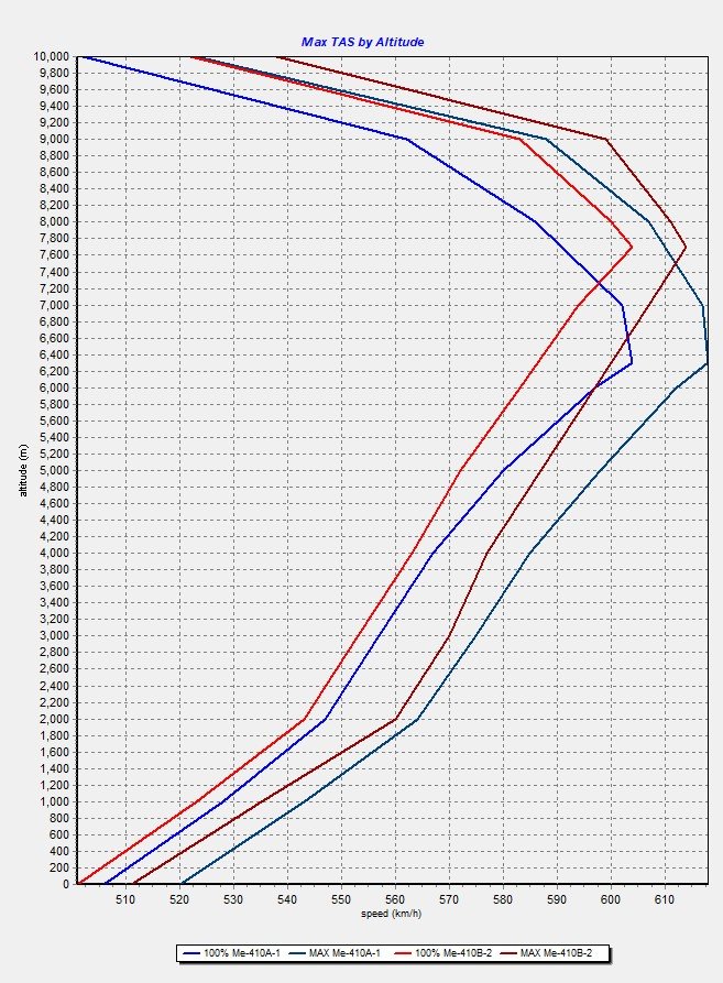 Interesting, I can believe that... the DB603 engines do produce substantially more power when compared alongside the equivalent Merlin's in the Mosquito IV so it makes sense that it can maintain as good combat cruise... until the 410 then starts to be overtaken by the Mosquito's superior aerodynamics and lighter weight as you push the limits.