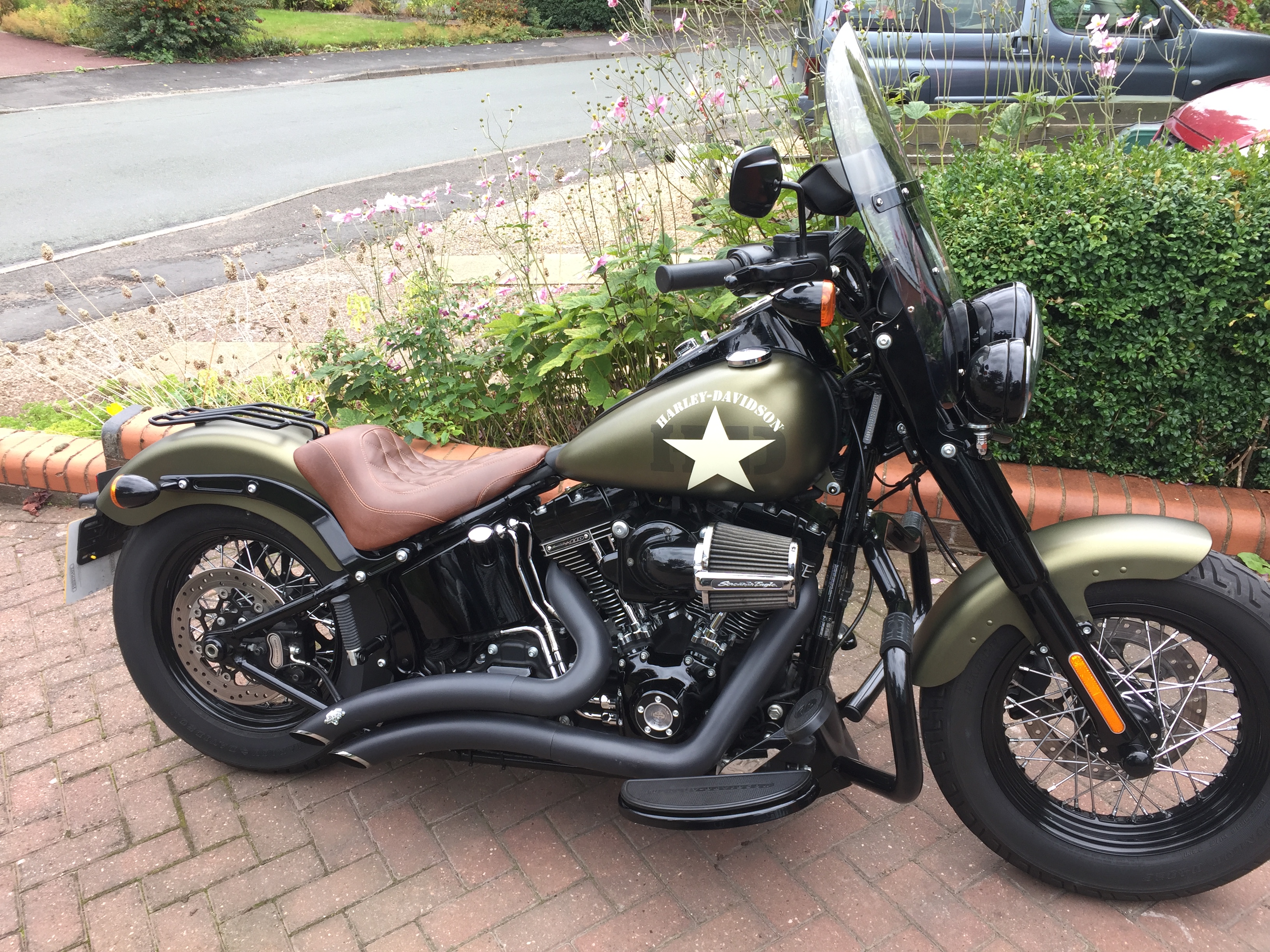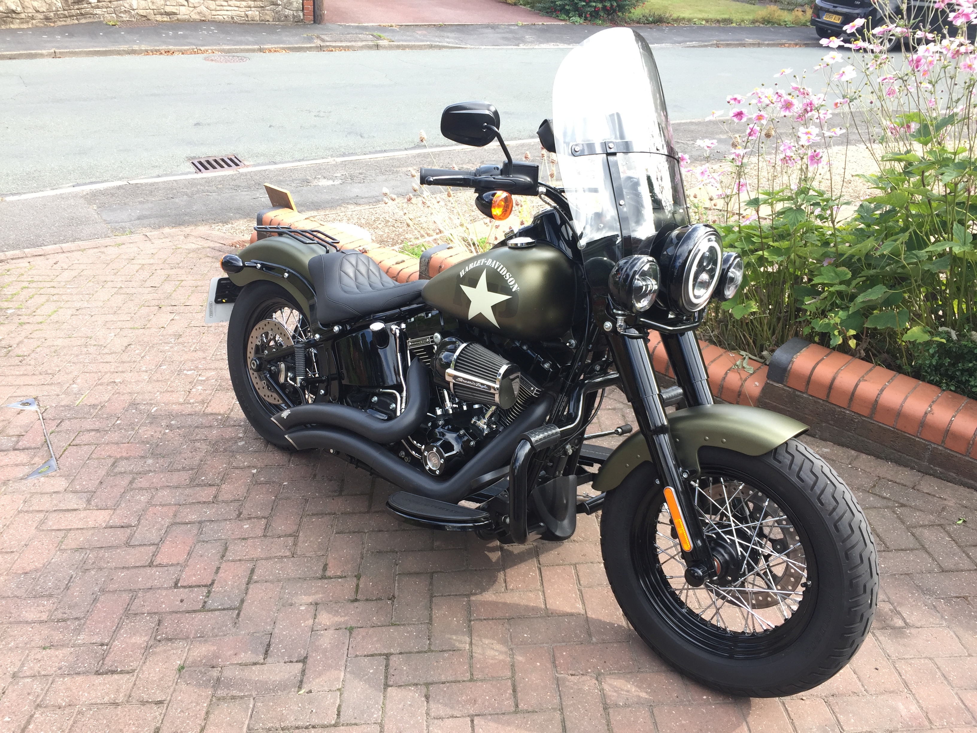 Trooper117 Posted September 14, 2022 Author Posted September 14, 2022 Thanks for the replies chaps... Ever since that 2016 Softail Slim S came out I knew eventually I would get one. It's taken some time to save the money, plus in 2022, the Slim S is getting increasingly harder to come by (in the UK), as they stopped making them with the 110 engine after 2017... They were only made in two colours, olive gold denim with the military look, and completely blacked out in vivid black. I was lucky in picking this one up about 3 weeks ago, as the previous owner had already improved the bike to stage 1, (new Vance and Hines Radius exhaust, new screaming eagle heavy breather air filter plus engine map). Also they had changed the stock seat for the Mustang variant, plus added the front screen and the extra LED headlights and crash bars... these were all things I would have done to the bike myself, so that has saved me a ton of money. The 1800cc engine of the 110 has as much torque as anyone would ever need, especially in the lower gear range, plus it has twice the range of my old Triumph, lol! I was worried about dealing with its 712 lbs weight, but was amazed at how light and responsive the bike is as soon as it starts to move... all in all, I'm more than pleased!