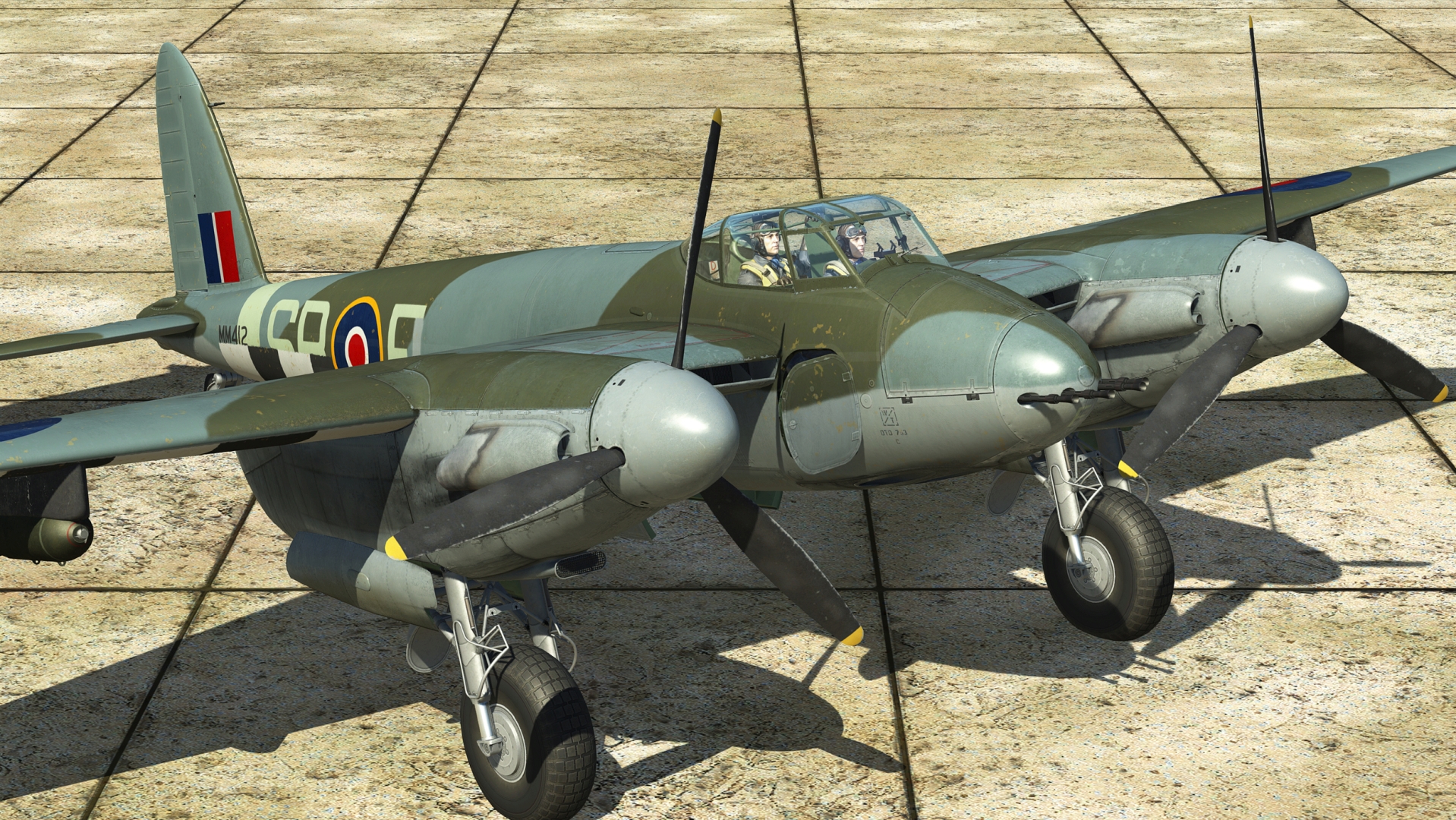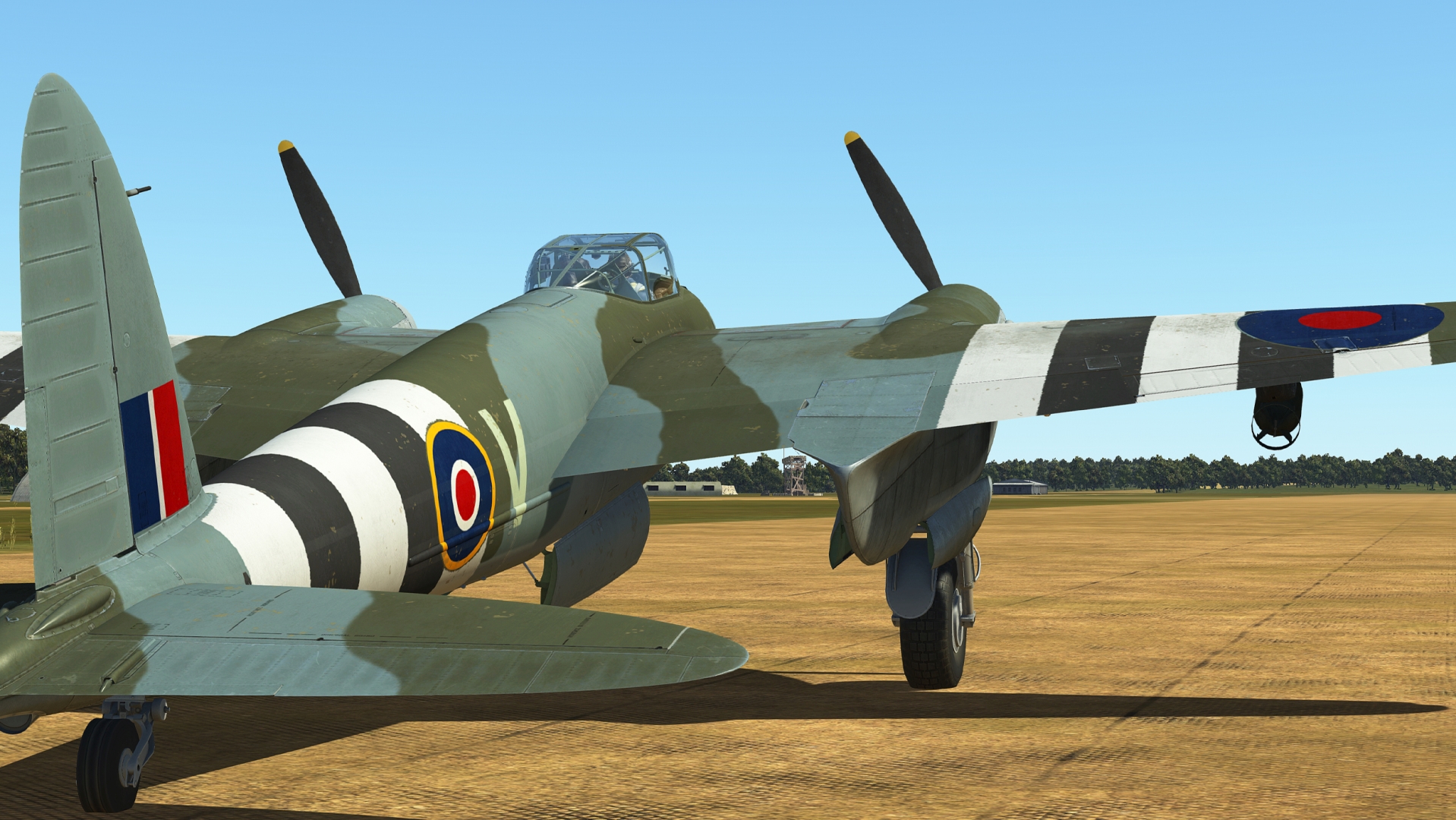 VBF-12_Stick-95 Posted September 21, 2022 Posted September 21, 2022 (edited) This is a historic skin pack based on SB-V of the 464 Squadron RAAF, including pre-D-Day, D-Day and Mid-1944. The Pre-D-Day and D-Day skins are an estimation of how they would have looked. SB-V S/N MM403 Pilot: Fl. Lt. Richard M. Trites RCAF, age 25. Took off from RAF Thorney Island at 0032 hours on 18 January 1945, being part of a force of 14 aircraft from the Squadron detailed to attack enemy targets in the rear of the Ardennes salient. MM403 failed to return from the mission. It was later established that the aircraft crashed 10 miles north east of Merville and that Fl. Lt. Trites had been killed in the crash. The squadron was officially formed on 1 September 1942. Personnel were drawn from many countries and only about 30 percent were Australian. In July 1943, the squadron was re-equipped with de Havilland Mosquitos becoming operational with these on 3 October. In early 1944, still based out of Hunsdon, 464 Squadron concentrated on attacking V-1 flying bomb launch sites. The squadron's activities were intensified from April as part of the preparations for the Allied invasion of Europe. It struck railway infrastructure, bridges, road transport and convoys. In contrast with its previous operations, these sorties were often conducted during daylight. The squadron continued to attack transport and communications targets from June 1944 to support the invasion. For the next two months, the squadron's operations intensified further. Throughout July it flew more than 350 sorties. In August 464 Squadron flew 400 sorties, concentrating mainly upon carrying out night-time attacks on German transports and infrastructure in France. Also included in the skin pack are three "Blank" skins (no lettering) for use with the in-game lettering capability. And finally, thanks to Raptorattacker for the template. Note: Just in case you haven't had a skin made up of 2 files each, this is one of them, so place all files in the Mosquito folder. Download link: https://www.mediafire.com/file/ahzwtoh235eiz1v/Mosquito_MkVIs2_464_RAAF.zip/file These skins are also available on HSD. Skin pack is: 464 RAAF Mosquito MkVI Artist is: VBF-12_Stick There is also a skin based on SB-F, S/N MM412 available. See in this post. Edited September 28, 2022 by VBF-12_Stick-95 9