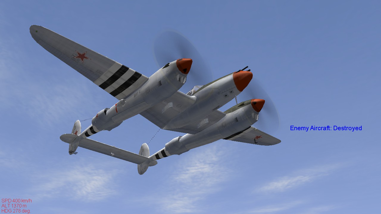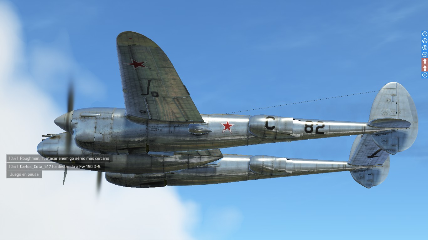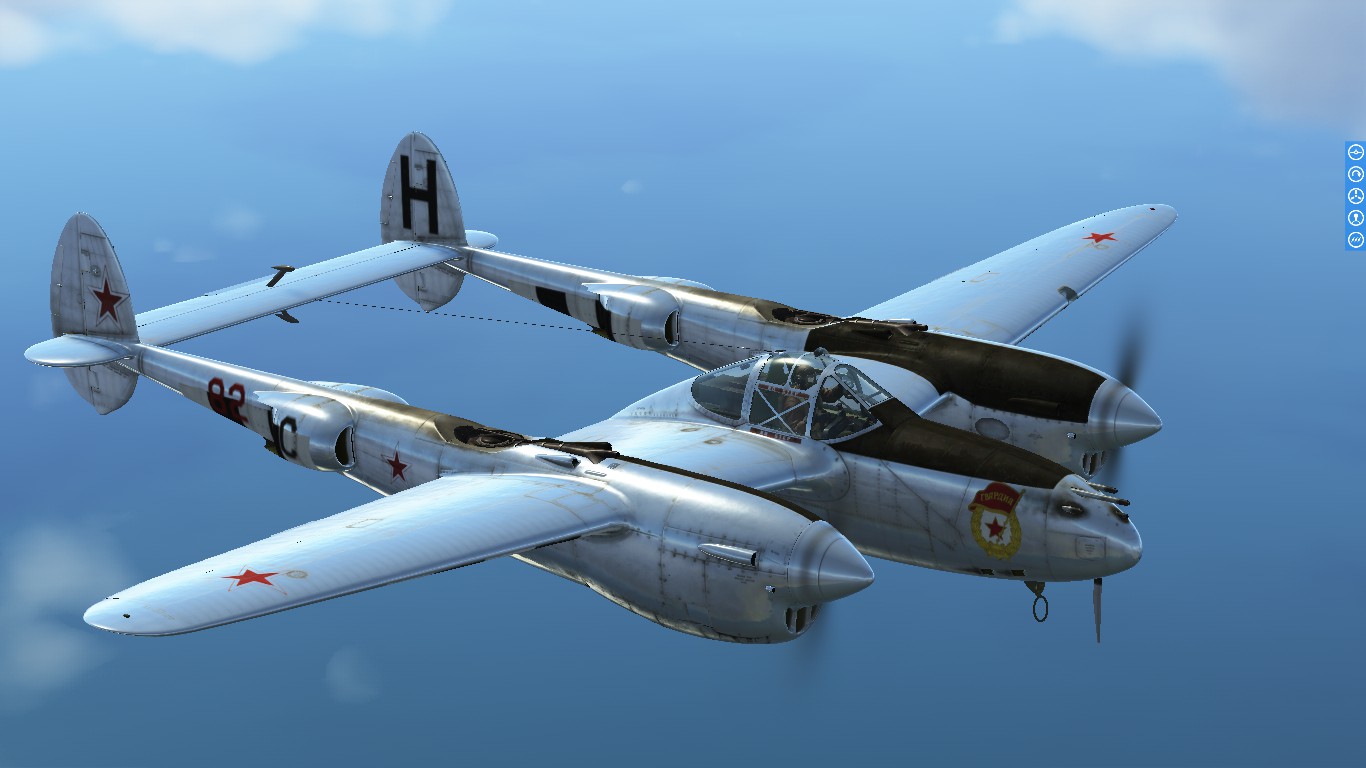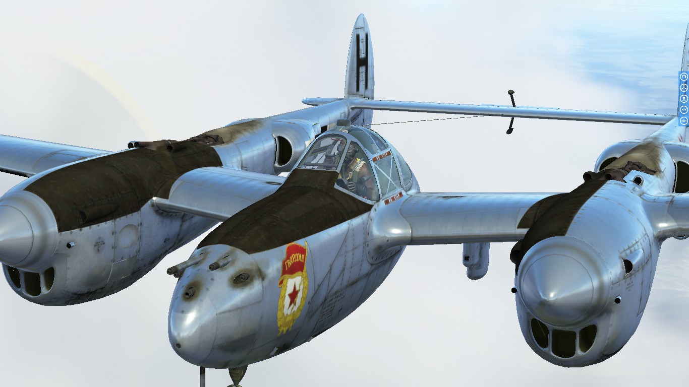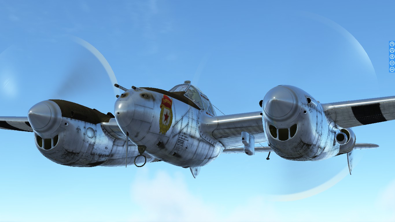 Carlos_Cota_517 Posted November 9, 2022 Author Posted November 9, 2022 (edited) On 10/9/2022 at 8:27 AM, Carlos_Cota_517 said: just a "generic" chromed p-38 skin with the Soviet union's roundels and logos... I been trying to do it myself, but working with Alpha is hard... ? Here's what I have (its blank; custom tactical codes can be input ingame on the hangar)... Link:https://drive.google.com/file/d/1Vxdbw-S8dKEdPar9kE4f8Osdwg4yQuoE/view?usp=share_link More pictures: Spoiler I had to be careful to make the anti-glare just opaque, and not invisible, with the alpha channel Maybe I should have added another pair of red stars to the rudders, and Guards logo on the nose... On 11/7/2022 at 7:10 AM, KOHTYP said: I have this option. That looks really cool Thanks a lot! Edited November 28, 2022 by Carlos_Cota_517 Link added