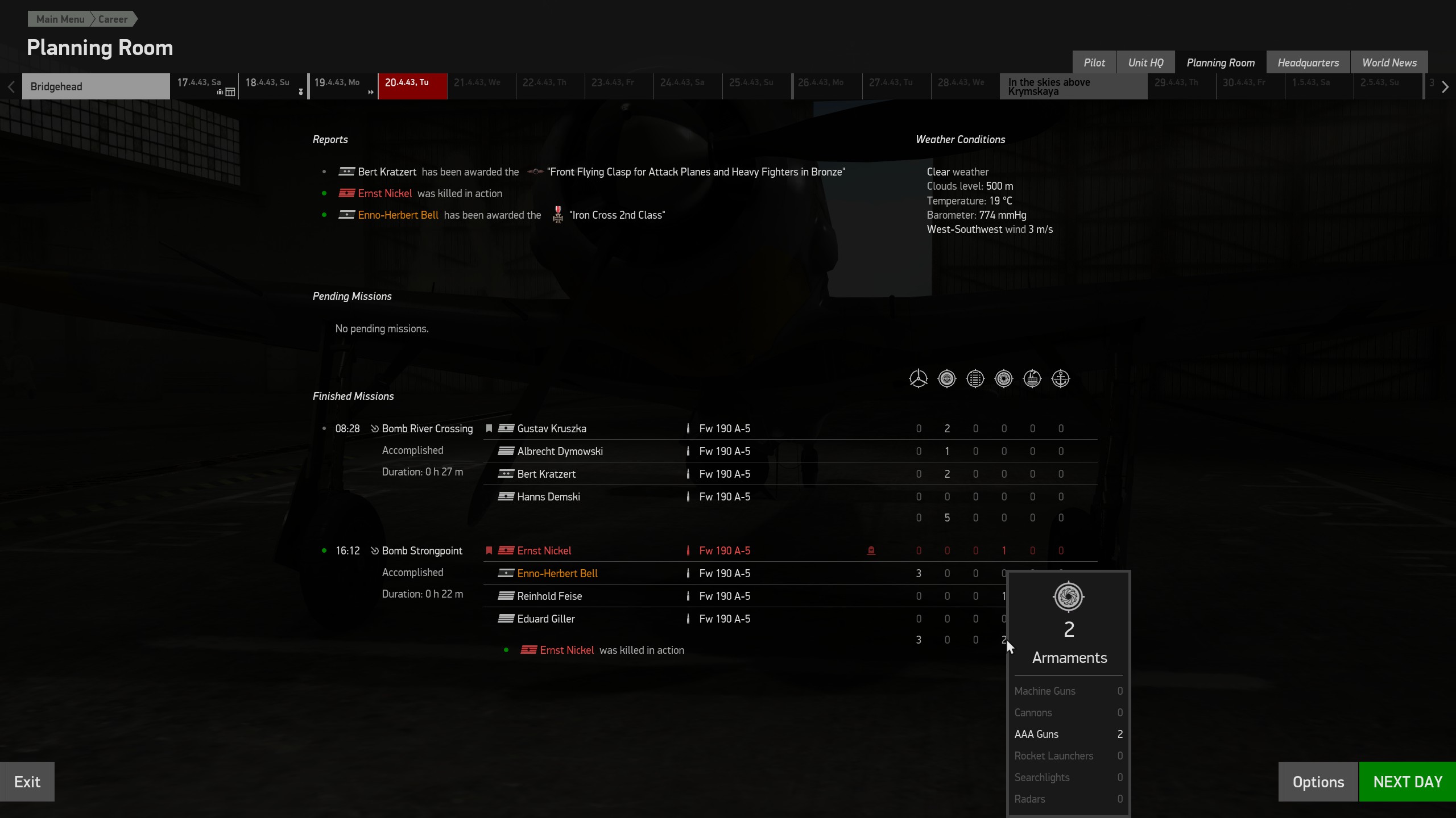 Calos_01 Posted October 13, 2022 Posted October 13, 2022 4 hours ago, Boogdud said: Hard to say, though my new career that I was talking about was a Normandy campaign. I can tell you the AAA that mine ignored was very close to the objective (maybe 300 yards) and it was almost between them and the objective and they ignored it. I'll keep an eye on it. Wish I had seen this thread before the mission I would have saved a replay. I more thought it was strange that I had 2 of my flight actually keep their bombs all the way home and didn't use it on the AAA after the objective was already destroyed. Yes, I have a quite similar experience (difficulty hard, density medium), my flight drops bombs to target (railway station or bridge (bridges if there´s another nearby) then goes home (P-47 or mustang). When in rocket typhoon, there are several passes, they are attacking railcars or trucks and AAA as well (but not as a priority target). In fact I´m happy with Normandy stock career, not only ground attack.