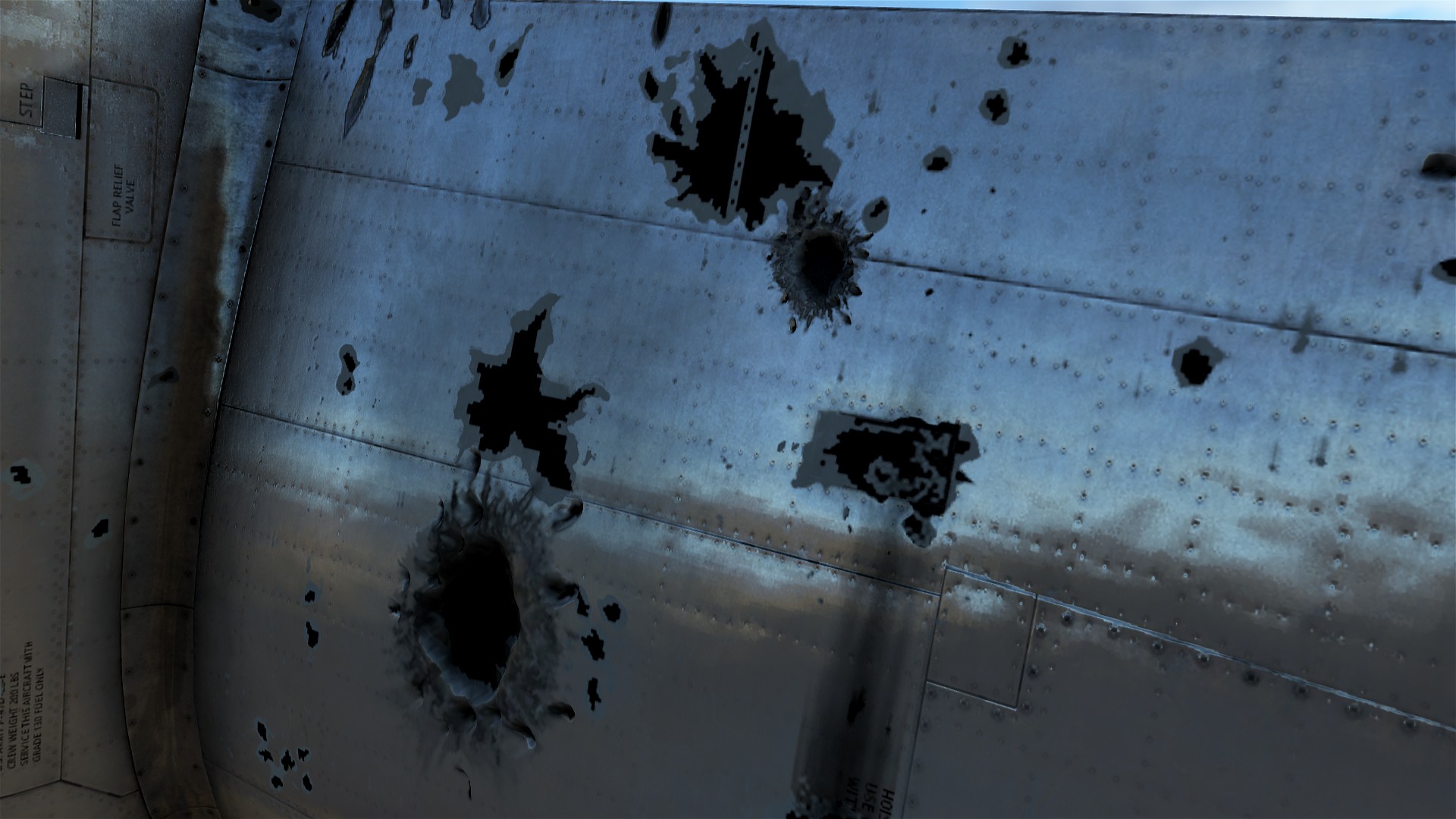 oc2209 Posted October 25, 2022 Posted October 25, 2022 Under further examination, the jagged inner edges of a German 20mm hole make the overall shape less symmetrical and round than it appears at a distance (and under poor lighting): Spoiler However, the textures are still awful next to the 13mm (right beside it). This might be a per-airframe DVD glitch that can be fixed over time. 20mm holes don't look this blurry on every plane (I think).