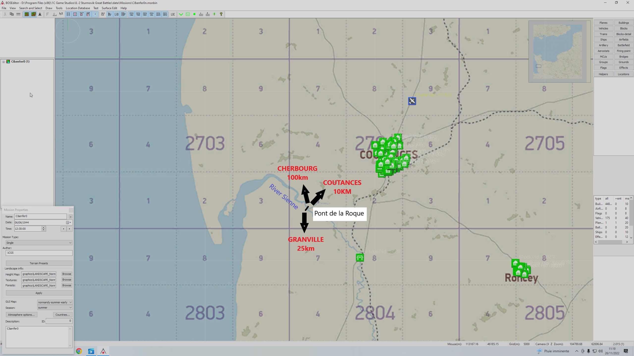 tribal50 Posted November 26, 2022 Posted November 26, 2022 Hi. Some comments and adjustments needed in Normandy map. 1. Pont de la Roque. This bridge is set on the river Sienne. It is one of the two bridges over this river. Before Overlord operation, Allied forces tried to destroy this bridge. The bombing starts on April 23, 20 bombing raids are not enough to destroy this bridge. Canadians and Americans lost a lot of bombers during these raids. Finally the bridge is destroyed mid of June, during Cobra operation. End of July, Allied reached Coutances, pushing German troops toward South , forced to use the only bridge remaining. On the IL2 map, river Sienne is there but the roads going to Cherbourg and Coutances (to the North) and Granville (to the South) are missing. These main axes were strategic and used by allied forces during Cobra operation. 2. Granville : It's the only harbour between Cherbourg and Saint-Malo. In 1944 June, Axis forces were numerous at this place because of the strategic location of this port. During Cobra operation, Allied forces run from the North (Saint-Lô, Cherbourg) to South (Avranches) to join Patton's armored division. Few kilometers before Granville, Allied forces are stopped because of a very powerful artillery fire from Granville. This event allowed German forces to escape from Granville trap and to reach others German division running to East. In IL2 map, this strategic harbour is missing, replaced with trees . The landscape is very flat; reality is very different, with cliffs. German artillery was operating from this high cape. 2 3