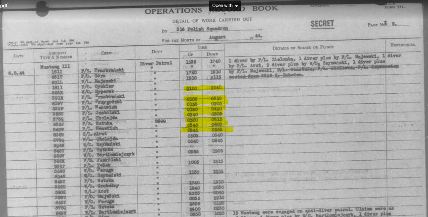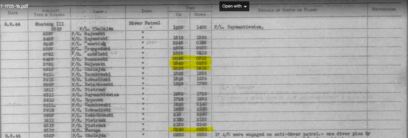 1CGS LukeFF Posted December 19, 2022 1CGS Posted December 19, 2022 (edited) Speaking of Mustangs and 316 Squadron, I'd overlooked something really interesting in their squadron logs - they were flying diver intercept patrols at night! ? That's definitely going onto my to-do list for updating the Normandy phase of career mode: (EDIT: I've also seen the same thing with 91 Squadron's Spitfire XIVs, in case anyone thought this was just a crazy Polish thing ?) Edited December 19, 2022 by LukeFF 1