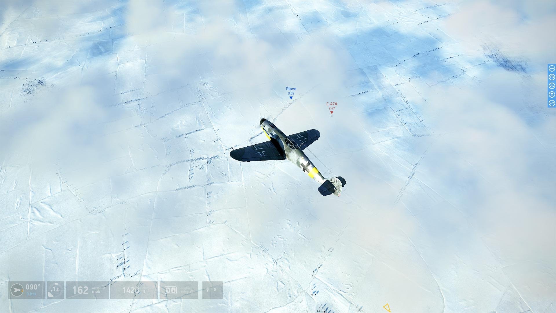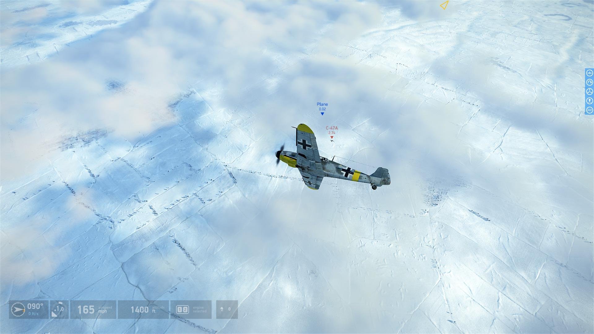 Charon Posted April 8, 2023 Author Posted April 8, 2023 @[CPT]Crunch I considered that possibility because that would indeed be easier, but two tests ruled it out: In one test, the AI did not seek out another co-altitude plane while flying through a thick cloud bank. In the control version of the test, with no clouds, the AI turned to engage immediately. I also ran a test with broken clouds. It's obvious when the AI spots the target because they increase engine power and turn towards it. In the first screenshot, the AI can't see the C-47 through the clouds; the second screenshot is taken just after the C-47 comes into clear view, and just at the moment the AI spots it. So I conclude the existing cloud occlusion logic works both in the vertical and horizontal, and takes into account the position of individual clouds. It seems to already be implemented very well. All that's needed is for it to be applied to tracking and shooting. Spoiler