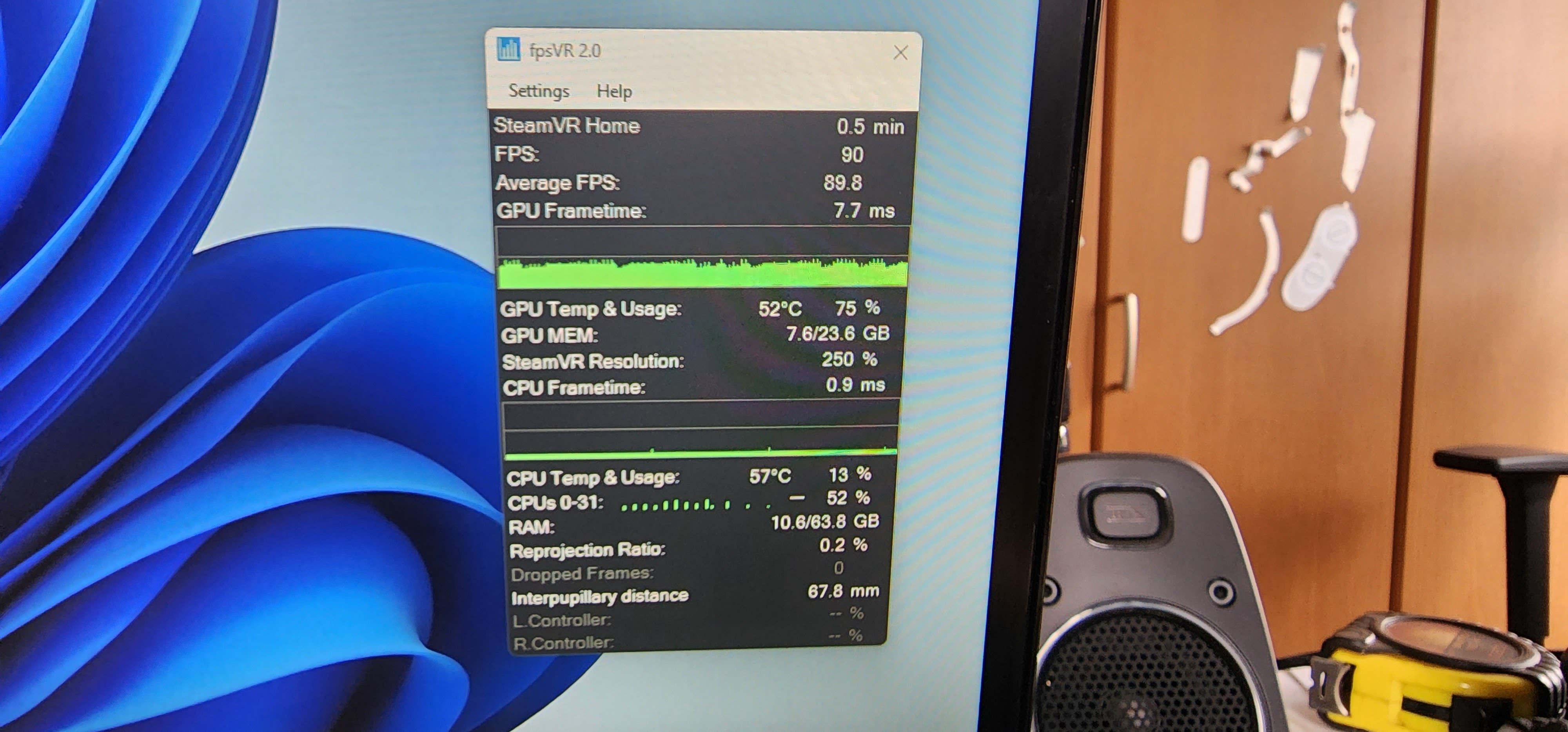 Panzerlang Posted April 12, 2023 Posted April 12, 2023 (edited) 8600k CPU, 3080ti, Virtual Desktop on Godlike at 90hz with SteamVR slider at 200%. Space Warp is off, video buffering is on. Lowest FPS was 54, smoothness of moving objects 95% good and image quality superb. In general the difference between the 3080ti and 4090, I wouldn't be chomping at the bit feeling I needed to upgrade if I hadn't already done it. And that's with the game graphics still turned up for the 4090. Don't bother trying this with Pico's Streaming Assistant, it locks the native resolution to its own "Ultra" setting (SteamVR slider increase does nothing) and in-game it looks absolutely shit. Edited April 13, 2023 by Hetzer-JG51