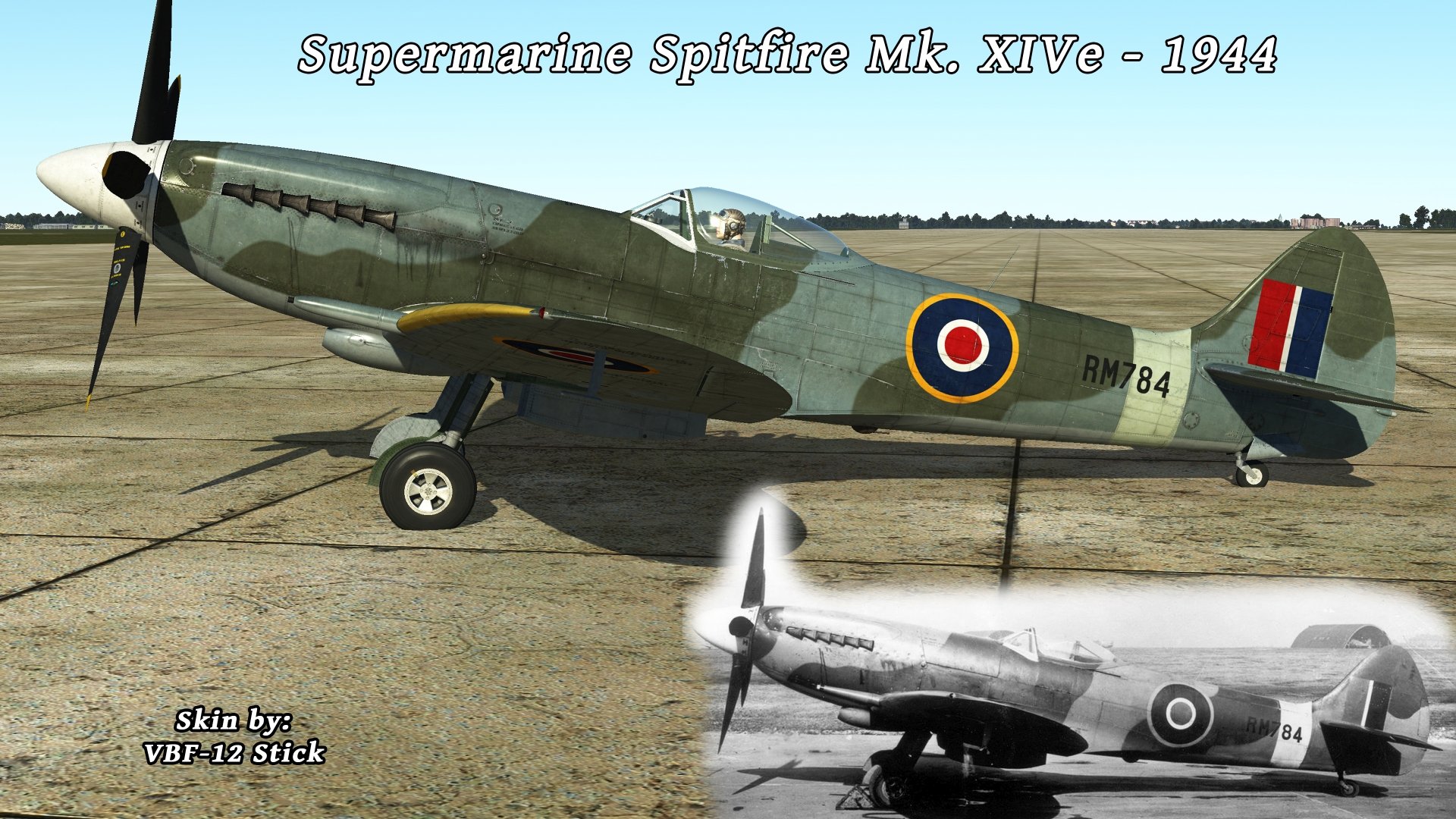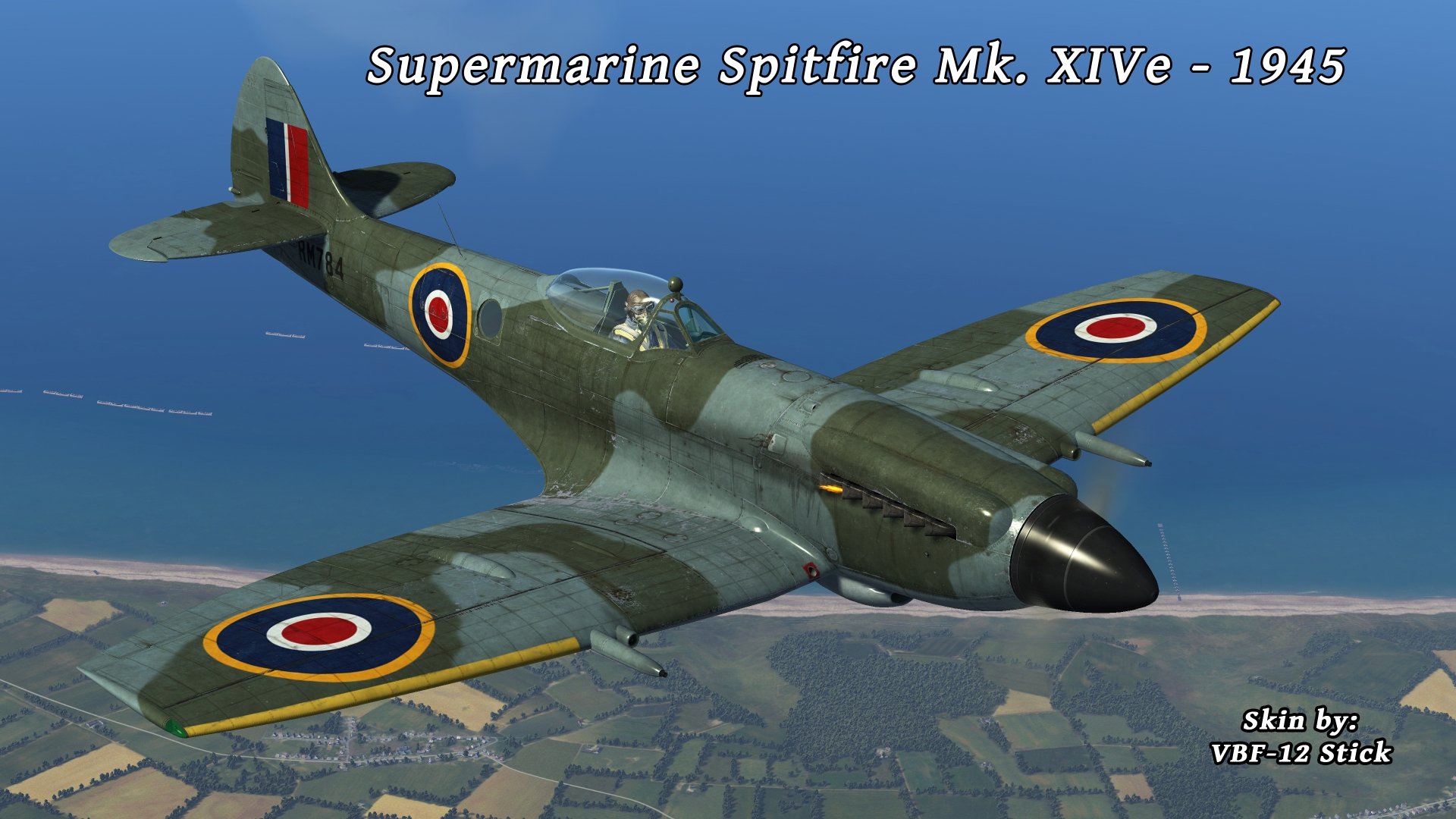 VBF-12_Stick-95 Posted November 30, 2023 Posted November 30, 2023 (edited) Hopefully it's OK to post my skins here. The first is a historic skin of Spitfire Mk XIVe, RM784. It was stationed at the Aeroplane and Armament Experimental Establishment, Boscombe Down, Wiltshire, for spin trials in March 1945. It was later transferred to the Belgian Air Force becoming SG-100. The clipped wing configuration does not work well with this skin due to the location of markings. There is also a generic skin of late war camo where the markings are moved to allow for use of the in game fuselage IDs as well as clipped wing configuration. These are also available on HSD. Artist is VBF-12_Stick. Download link:https://www.mediafire.com/file/c6jy4l18ij78pl1/SpitfireMkXIVe_RM784.zip/file EDIT: 1944 skin corrected and pics updated. If you notice any issues, please let me know. Stick Edited December 4, 2023 by VBF-12_Stick-95 5 2 1