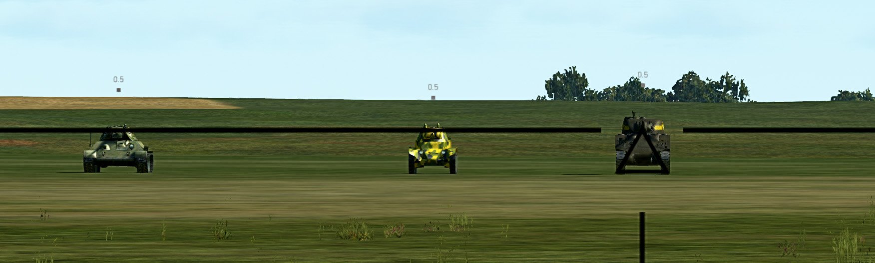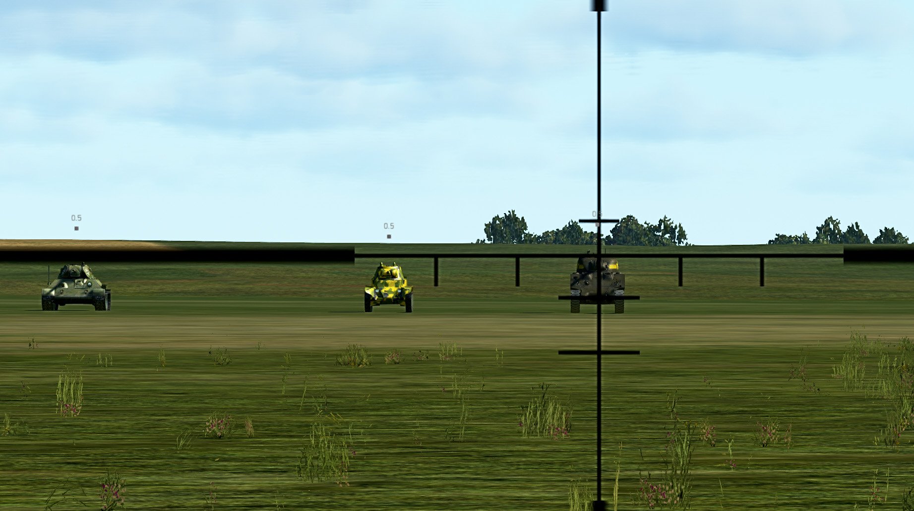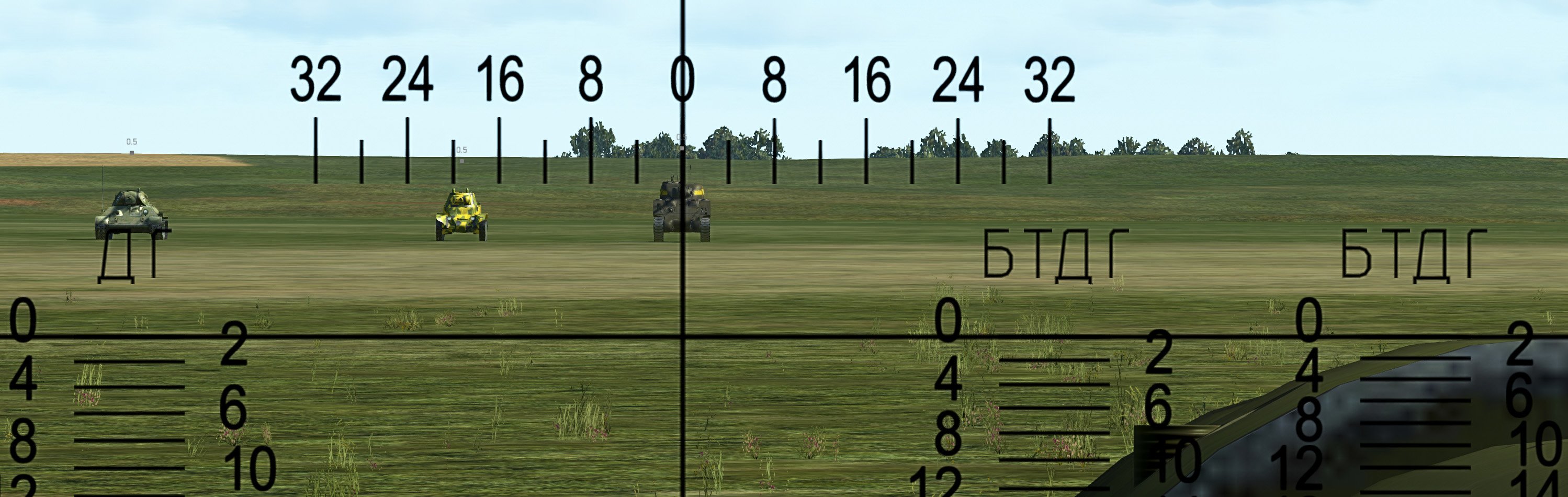 MajorMagee Posted August 30, 2023 Author Posted August 30, 2023 (edited) The vehicle spacing is 10m and 15m center-to-center at 500m distance. 10m is 20 mils at 500m. (15m is 30 mils, and 25m is 50 mils) The Sherman was at the center of the field of view before cropping. German Bino 5-10 mils Panther 4-8 mils PzGr.39/42 scale is AP, Pak Gesh 40/42 scale is APCR, Sprgr.42 scale is HE (and MG) M4A2 10 mils (Circle Diam., Horizontal Bar Lengths, and the Distance from the Dot to the Inside Edge of the Bars) Tiger MG 4-8 mils Tiger 4-8 mils Churchill MG 8 mils Churchill 8 mils Su152 4-8 mils From the station notes: The range scale on the left works for the HE only. None of the scales are correct for APHE, you have to watch the text on the right as you make adjustments to know what you have the distance set for. Pz IV and Pz III 4-8 mils Pz IV Pzgr 39 scale is AP, Pzgr 40 scale is APCR, Gr 34 u MG scale is HE and MG, Gr 38HL/C is HEAT Pz III Pzgr scale is AP, Sprgr scale is HE (and MG) KV-1 and T-34 4-8 mils СГ - "Старая Граната" (Staraya Granata/Old Grenade) it is for Ф-354(F-354) HE round with 640 m/s muzzle velocity ДГ - Дальнобойная Граната(Dalnoboynaya Granata/High range grenade) - for ОФ-350/350А (OF-350) HE round with 680 m/s ДТ - machine gun Дегтярева Танковый(Degtyareva Tankovy/Degtyarev's for tanks) with 840m/s muzzle velocity. KV-1 and T-34 Second Sight APHE БР-350Б (BR-350B) have 655 m/s velocity. Su122 4-8 mils Su122 Commander 4-8 mils Stug III and Elephant 4-8 mils Soviet Bino 5-10 mils Edited September 2, 2023 by MajorMagee 1