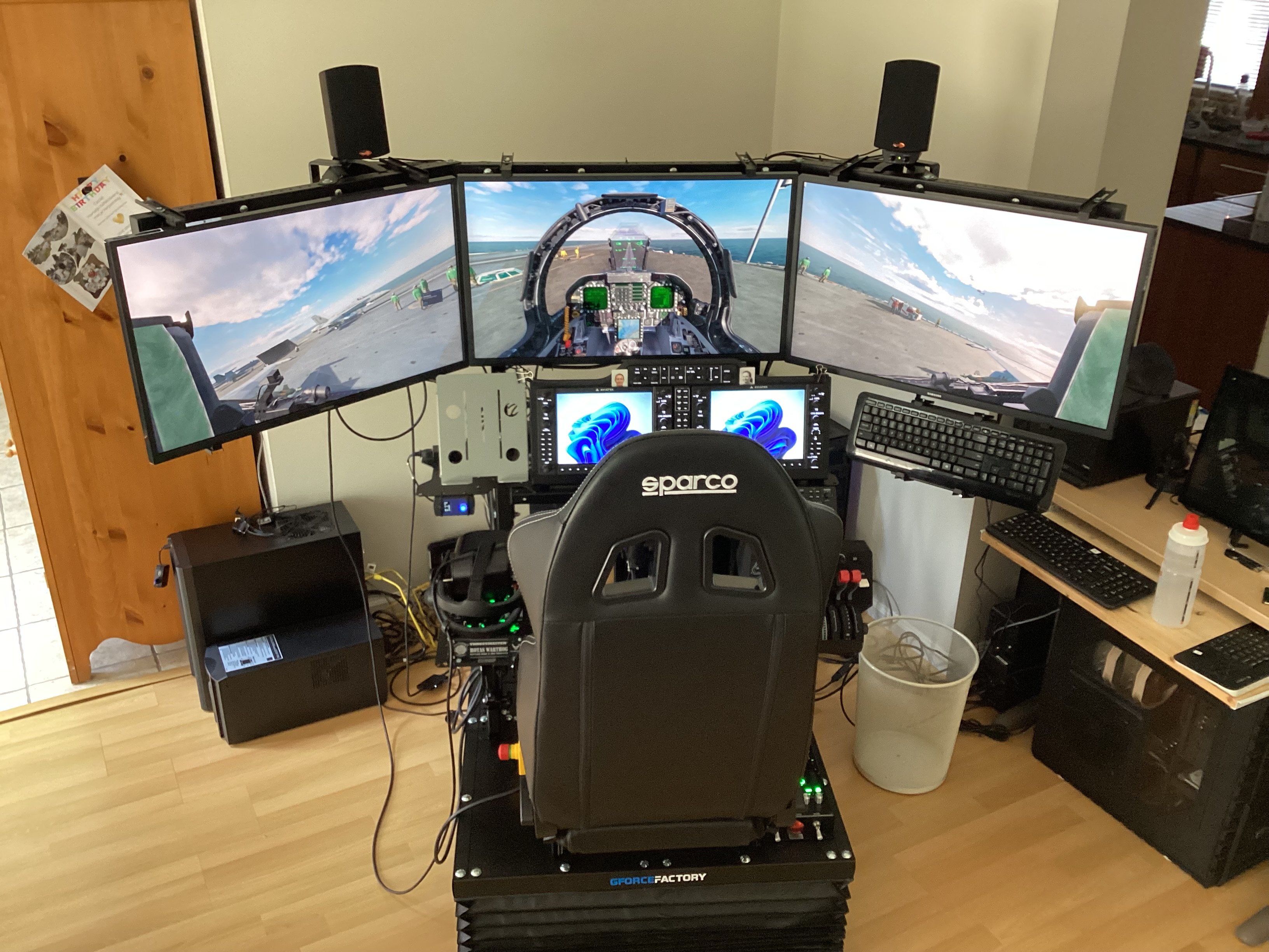 BigC208 Posted September 2, 2023 Posted September 2, 2023 (edited) Been sitting on the fence for years contemplating getting a 6DOF motion platform. Last year the Dollar Euro exchange rate became favorable for the Dollar and I decided to test the platform. The company is in the Netherlands. I go there every year visiting family so a year ago I made an appointment to take a test flight. Spend about 3 hours there talking to Wijnand Derks, one of the owners of the company, and testing the setup they have in their showroom. He used to fly gliders so we have a similar aviation background. I tested X-Plane 11 and Il2-GB on three 30 inch monitors. After testing X-Plane 11 I was sold already. It has good multimonitor support so no stretched views. Il2 not so much, shitty stretched views at the edges. Didn’t bother me too much because I normally fly in VR in Il2 or use track IR. It would be nice if they could add multi monitor support like X-Plane, MSFS and DCS. This stuff is expensive. The platform itself was €7999 when I tested it. When I ordered the price had gone up to €8999. They let me have it for the old price. By the time I added the seat, multi monitor stand, side consoles and brackets for joysticks etc I was looking at €9500. Shipping was another nasty surprise. Because of COVID freight prices had shot up. Came to €2500 for shipping to North Carolina. The €7999 I sold my wife on had become €12000. Luckily she was still ok after the price crept up. Took a month before I had it at home after ordering. The platform was a pain to get in the house. I was out flying that week for work and they had left the 300lbs package sitting on a pallet in front of my house in the driveway. Wife covered it with a tarp until I got home two days later. I have a few steps up to get to the front door and it was a hassle. The box barely fit but we got it in. Setting it up went quick. All the needed tools were included and nuts and bolts for the peripherals were neatly packaged so no worries mixing things up. The platform itself is plug and play. Is it worth it? Big question. It ads a lot of realism to X-Plane and MSFS2020. I have a G1000 setup attached to it and practice IFR procedures. There are some limitations of course. When in a bank the platform banks. You start to lean left. In a coordinated turn you don’t do that in real life. Lifting off the runway and landing feels very realistic though. Shooting an ILS approach in bad weather with turbulence can get scary real. Doing partial panel work and trying to fly by the seat of your pants, instead of trusting the remaining instruments is a good way to crash. Very good IFR training tool. Trust the gauges, not your butt. Worth it for these two simulators. Whereas I sold my wife on the practice value as an IFR procedure trainer, that excuse didn’t fly with Il2 and DCS. ? They’re both a blast though. Using VR in IL2, with motion compensation, takes the game to a different dimension. Had to tone the motion down to 25%, from the standard 35%, in Il2 after I stalled a P51 and spun the thing almost into ground. Got thrown about a tad too much. You get a much better feel for when you get to the edge of the envelope. No jerky stick movements when lining up a kill either or the platforms movement throws you off. The most tactile fun are WWI aircraft. Make a solid rudder input and the platform yaws like crazy. Great feel when using rudder to line up kills. Pitch up or down fast and the platform does the same. Faster WWII aircraft don’t move the platform as much. Just give you movement cues. Combined with the VR it really feels you’re upside down in the middle of a roll. Platform only moves for the onset and then quietly centers again. DCS is also a blast, with or without VR. Launching off the carrier and getting a kick in the butt is a whole new experience. Same with trapping. The jets move about a lot less around the yaw axis because of the speed so not much to feel when doing high speed runs. When you get close to best maneuvering speed it’s more fun. Another nice effect is going into after burner in level flight. The platform pitches up to simulate you getting pushed in the seat. When you close the throttle the platform pitches down so you feel less g’s. It does the same in turns so the platform attitude won’t always imitate what’s going on in the sim. Despite the cost, I’m enjoying it to the point where I miss it when I’m not using it. I can’t compare it any other 6dof platform or setup so value wise I can’t judge. I also looked at Motion Systems, a Polish company. They have a system around €21000 that ticked a lot of boxes but was too heavy at 305kg and needed 220v. I’m running three, 30 inch, 4K monitors. I7-13900k and an rtx 4090 for the three monitors. For the two smaller G1000 monitors I use a gtx980ti. VKB Gunfighter, Warthog Throttle, MFG crosswind rudder and a Honeywell Bravo throttle. Edited October 13, 2023 by BigC208 4