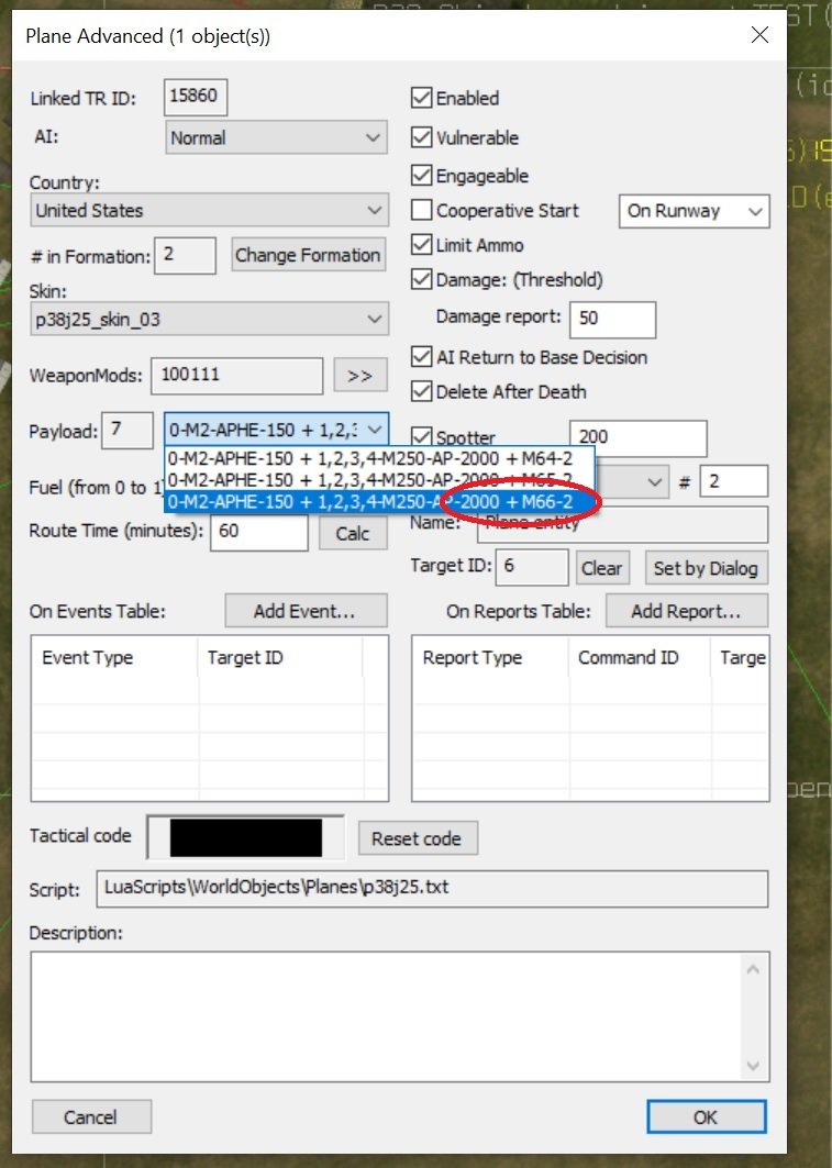 jollyjack Posted September 17, 2023 Posted September 17, 2023 (edited) Hi, as for 'funtime' sports torpedoing with the LizLemon/CountZero MOD i tried the p35 with the seemingly latest Torpedo version: https://www.mediafire.com/file/zhdes5wh90sxij9/Torpedo+He111,Ju88,Ju87,Bf110,190,P38,Pe2,IL2+v2.zip/file With this MOD (use JSGME to install it!) the He111 seems to work fine, only i don't seem much of the torpedo's trails, but with the P38 the torpedoes behave like normal bombs it seems. TESTER mission: (Rheinland and P38 needed). P38 Ship torpedoing v1a TEST.zip TESTER with a HeinkelHe111H6 instead; He11H6 Ship torpedoing v1a TEST.zip (i've put a British captured He111H6 historical skin for download on Haluter's LoL) With the P38 you'll have to select 1000kg bombs with plane settings manually at game start to get them to load. I could not find how to select the 1000kg bombs (for the torpedoes to load) in the ME with advanced plane settings for the P38 alas. ADDED: figured the loading out for ME settings: There ye' go .. ADDED: alas they don't work anymore as torpedoes like before in older game versions. Hopefully some one can fix the LizLemon and CountZero modding ..... Edited October 19, 2023 by jollyjack