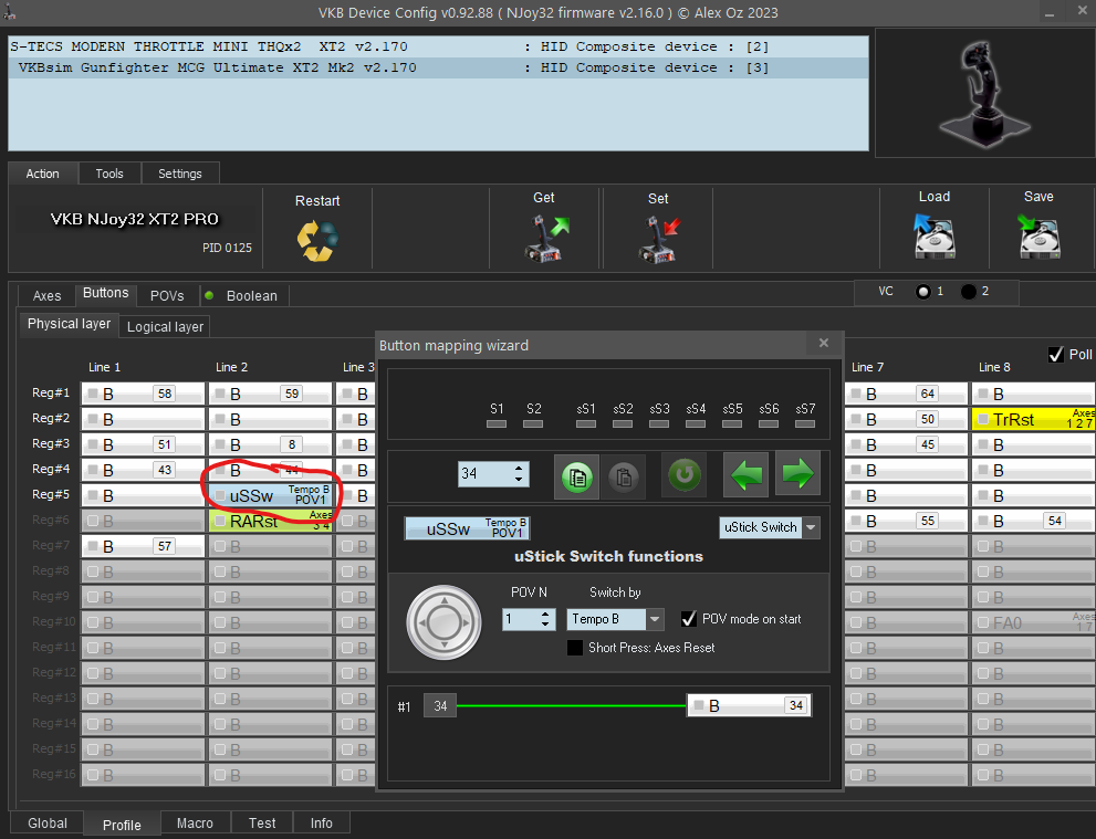 KpaxBos Posted October 29, 2023 Author Posted October 29, 2023 Hello, Yes no problems with STECS. It functions perfectly with IL2GB. IL2 GB recognizes only 64 buttons. On the stecs, you can have up to 128 buttons, so, in IL2 settings, buttons mapped above 64 are not usable. In the software, VKB, you can define virtual controllers. But it seems that IL2 does not see this second virtual controller. N.B.: you can define virtual controller for any VKB devices. BR.