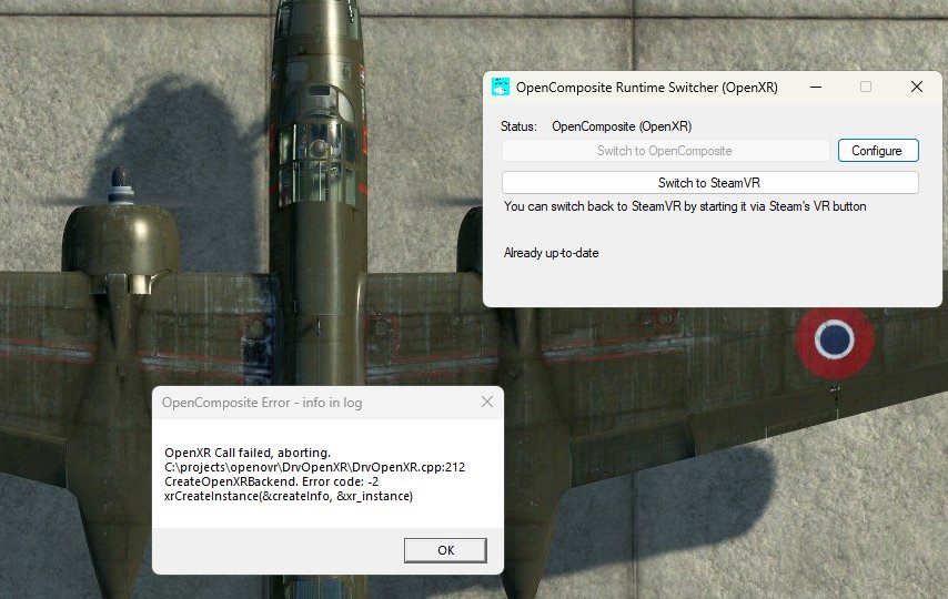 hsthhsth Posted February 8, 2024 Posted February 8, 2024 @Blitzen have you tried downloading & installing the DLL directly from OpenComposite/README.md at main · aashishvasu/OpenComposite · GitHub ? Under the section "Per-game installation". Standard OpenComposite installer messed up on my system, installing the DLL I downloaded last year solved this.