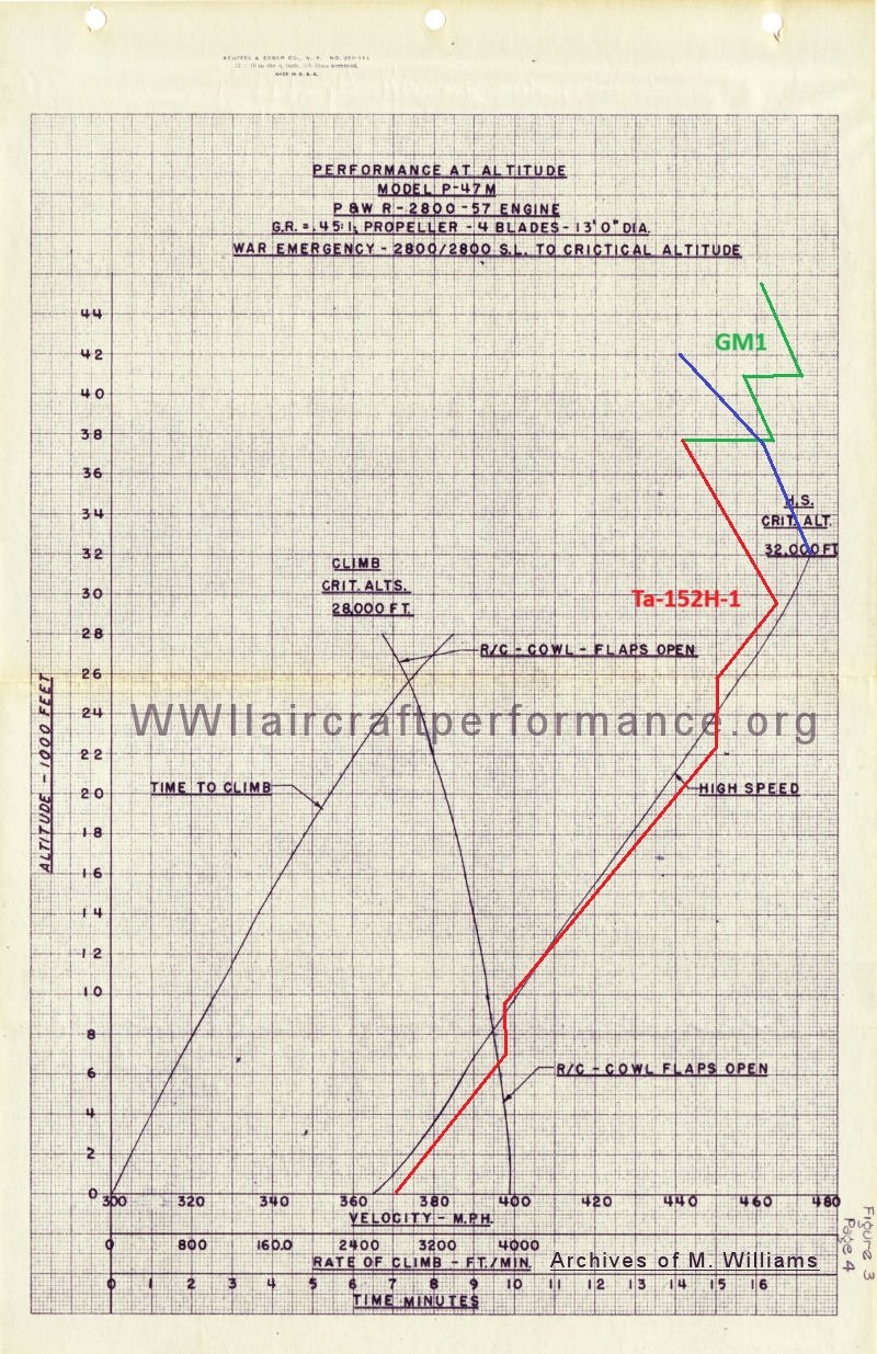 354thFG_Panda_ Posted December 10, 2024 Posted December 10, 2024 (edited) 9 hours ago, DSR_A-24 said: Some differences between the P-47D-28 and P-47M. -Increase in critical altitude. 24,500ft to 32,000ft -New propeller gear ratio changing the max RPM to 2800 from 2700, and subsequently a higher military power of 2100hp. -Slightly longer fuselage due to the new propeller hub, but only by 1/4 inch -Dive recovery flaps -Possible differences? Given the P-47M is a P-47N fuselage + P-47D-30 wings. We see a 564mph maximum dive speed at sea level. Does anyone remember that link to the P-47M pilot interview? I remember him claiming some pilots of his squadron were over boosting their engines to 76"Hg. This practice may have been pretty common with the 56FG as Robert S. Johnson's P-47D was boosted to 2700hp in 1943. Ta-152H-1 vs P-47M There's this from some of the engine troubles it had. (Point d.) Also aileron difference http://www.wwiiaircraftperformance.org/p-47/p-47m-20march45.jpg Edited December 10, 2024 by 356thFS_Red_Panda