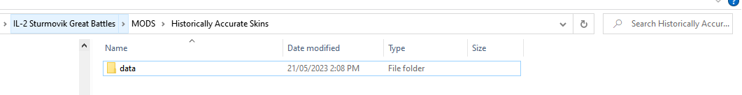 Stonehouse Posted April 1, 2024 Posted April 1, 2024 (edited) As czech693 says, it's how you have installed the mods in your mod folder. In 99% of the case your mods should have the structure below. The exceptions are mods for things like the Easy Mission Generator by Vander that sit outside the game. Mods for actual game files need to conform to the structure below so that when enabled in JSGME the contents of the mod folder will be copied to the correct location within the data folder under main game folder. If you get the structure of the mod folder wrong, then when enabled stuff gets copied to the wrong location under the game and the game will not see the mod and instead will use stock info. You need to disable all your mods in JSGME and make sure they are correctly installed in the mods folder before you enable them. your MODS folder -mod name -data -some other folder such as luascripts and within this folder files and sub folders containing the mod contents So for example using my mod folder and the AAA mod Now drilling down into the bots folder, you can see the files containing the altered versions of game files plus a few custom files I have added to the mod. When enabled all these files need to get copied to IL-2 Sturmovik Great Battles\data\LuaScripts\Worldobjects\bots for the mod to work. Another example Historically Accurate skins now drilling down through the graphics folder Edited April 1, 2024 by Stonehouse