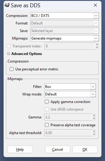 Sheriff88 Posted April 20, 2024 Posted April 20, 2024 (edited) See update to my post above. Pretty simple. When exporting as dds file use these settings: Edited April 21, 2024 by Sheriff88 1