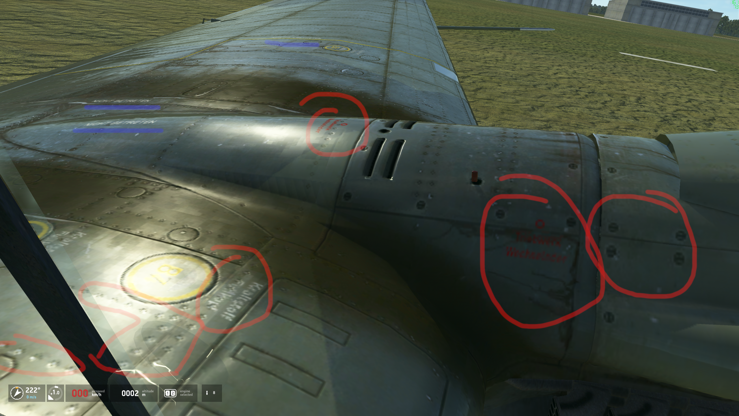 Sonko Posted May 24, 2024 Posted May 24, 2024 Hi guys, I've noticed that parts of the skin of the HE-111 H-16 looks very blurry when I'm in cockpit view and look out of the windows towards the engine nacelles. It's similar with the other larger aircraft in this game. Am I missing something here or could this be a good idea to implement larger bomber skins with more pixels in the future? Red marking = bad Blue marking = good Cheers Sonko