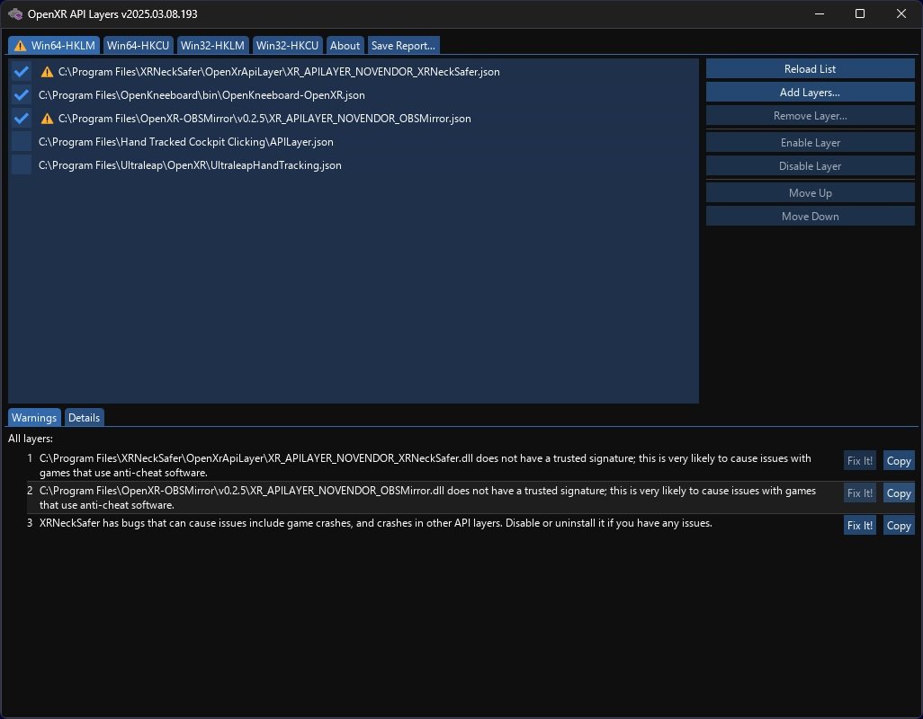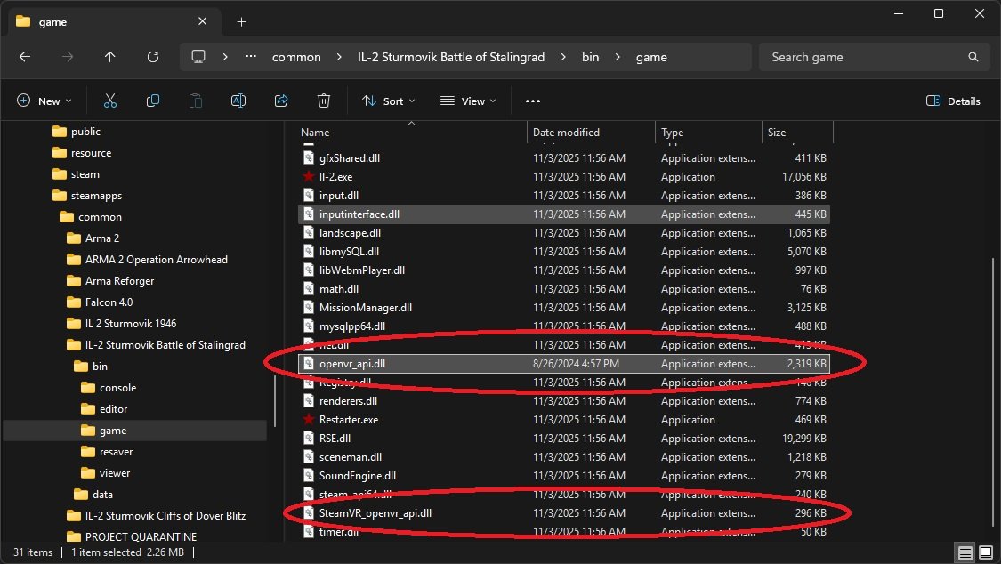 Patricks Posted September 10 Posted September 10 (edited) On 8/31/2025 at 1:42 AM, Internethetzer said: Yes I did exactly as you said Game keeps starting in 2D when selecting "start using steamvr" I have the "openxr toolkit companion app" I open it every time im using OpenComposite I will leave that option open when Im in the mood for a more escalated solution Btw I have a AMD GPU not Nvidia, does that make any signifcant difference? Where do you see this option ("start using steamvr")? Is it in Steam itself? Try making a shortcut to the Launcher.exe on your desktop and starting from there. If it's a Steam install it should be in the C:\Program Files (x86)\Steam\steamapps\common\IL-2 Sturmovik Great Battles\bin\game folder. Disable any other APIs (like OXRTK) to eliminate them as an issue, easy to do using the OpenXR-API-Layers-GUI app, get it here. As far as the AMD vs. Nvidia, no idea, have not used an AMD GPU in 20 years.. Edited September 10 by Patricks
