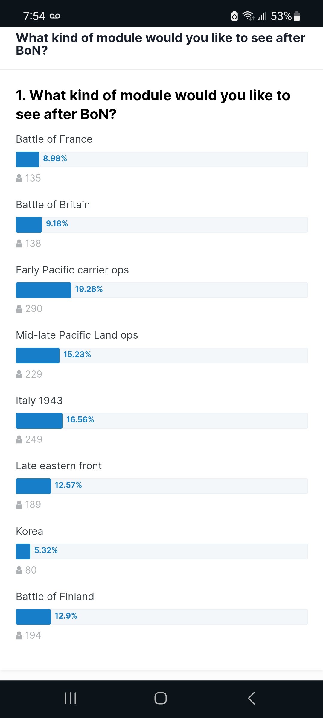 I think this. Will perhaps signal the slow wind down and eventual death of the company.  Korea as far as i know has never had a huge sim success.   WW2. Is always a winner, no matter the front.  I would have thought that continued fleshing out of ww2,   and more. Done in tank crew. With. More tanks,td's, mobile artillery and scout cars would heve been exciting.    It appears, that the majority of us, or a large swathe will simply need to hold on, continue to play il2.  Until the next ww2 sim comes out...   additionally, i do not think that the new. Pacific theater game being worked on will be that next great thing.   A novelty game with probably lower draw, much like this new korea game will be unfortunately