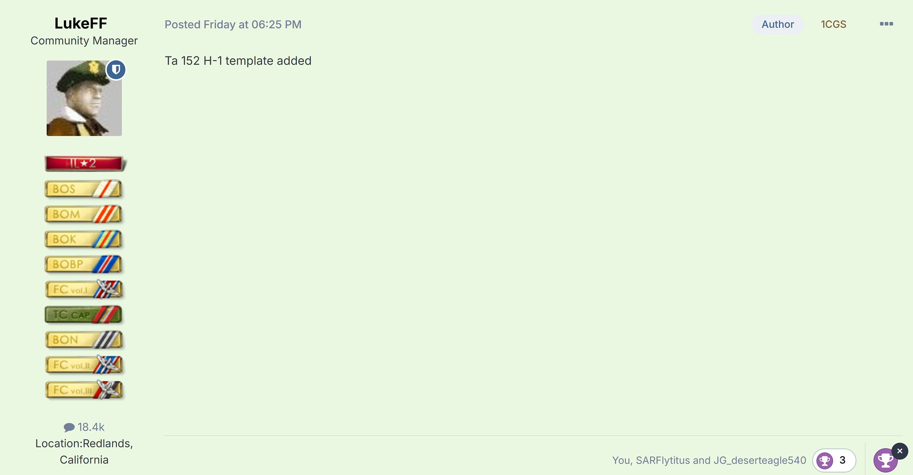 LG-1_BARCLAY Posted August 8, 2024 Posted August 8, 2024 I've been looking for the skin template for the Fw Ta 152 for some time. Unfortunately, I fear that everything will soon only be about Korea. The post - Skins and Templates - by By LukeFF is closed and will probably no longer be continued!?