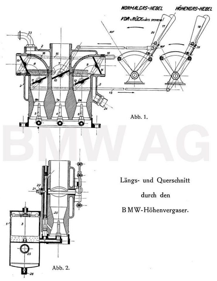 No.23_Starling Posted August 26, 2024 Posted August 26, 2024 Hi all, I just saw that BMW have digitized the original iiia engine manual from their archives. You can access it here: https://bmw-grouparchiv.de/irc/resultlist/detailpage?id=3052421 You might need to setup a BMW account but that should be free; once done so you can add this document to a workbook then view it and print as a PDF etc. There's not a lot here that's revelatory and it reinforces what is largely said in secondhand sources, but it does conflict with the DVIIF and DXIIF in Rise of Flight and Flying Circus in terms of altitude throttle usage. There's some really helpful stuff in the document around operation of the altitude throttle, the workings of the carburetor, and technical drawings I'd not seen before. A few things pop out: Altitude Throttle Usage The manual states that the three valves labelled 10, 13, and 14 are used for normal flight (see diagram) with the two lower valves labelled 11 and 12 are operated by the separate altitude throttle "from an altitude of 2000m", up to "4000m". In the operating instructions it describes the operation at 2000, 3000, and 4000m: "When flying, the following instructions must be strictly observed: 1. Climb to about 2000M: no further regulation. 2. Climb from 2000-3000m: at 2000m carefully open the altitude throttle until the engine gains about 20-30rpm; then continue to climb without further adjustment. 3. Climb from 3000-4000m: at 3000m open the altitude throttle until the engine gains another 20 revolutions; then continue to climb without further adjustment. 4. Climb above 4000m: at 4000m, open the throttle completely. From this altitude onwards, you can fly with the altitude throttle open at all times." The whole process is reversed for descending until 2000m: "In order not to overload the engine, until at 2000m altitude the altitude throttle lever is completely closed." It then strongly advises pilots not to err from these instructions: "The entire available power can be used at any altitude at any time using this one lever. However, the engine should not be loaded beyond the speed specified above unless absolutely necessary." They lastly say that the pilot should experiment a bit to find the right positions and "mark the positions for 2000, 3000, and 4000, altitude on the segment of the altitude throttle." Fuel and Benzene Addition They address this directly stating that the fuel used should be petrol with a specific gravity of 0.72 - pretty standard stuff - but: "petrol with a higher specific gravity or benzene can also be used without any changes to the carburettor, but the performance will be slightly reduced, the engine will run a little harder and the carburettor transitions will not be quite as good as when using regular petrol." FC Comparison In terms of what this could mean for our in-game model @LukeFF, it looks like our engine allows for modest altitude throttle usage 1500m too low, and full usage a good 2000m too low based on BMW's recommendations (you can start using it at 500m and open it fully at 1500m in Flying Circus). This advice around usage above 2000m is echoed in the words of Lothar von Richthofen (see Fokker DVII Aces of WW1, Franks) and we've no reason not to ignore him and BMW's own engineers. The manual also eschews any mention of benzene allowing for low-altitude usage and actually states that it will reduce performance. I'm not sure what apetite there is for altering the altitude throttle modelling but the evidence is pretty strong that something isnt correct. I'd advise those of you with an interest in the engine to download a copy @Holtzauge @=IRFC=Hellbender @J99_Sizzlorr. Do have a crack at your own translations and let me know if I've got anything wrong! S! 2 1