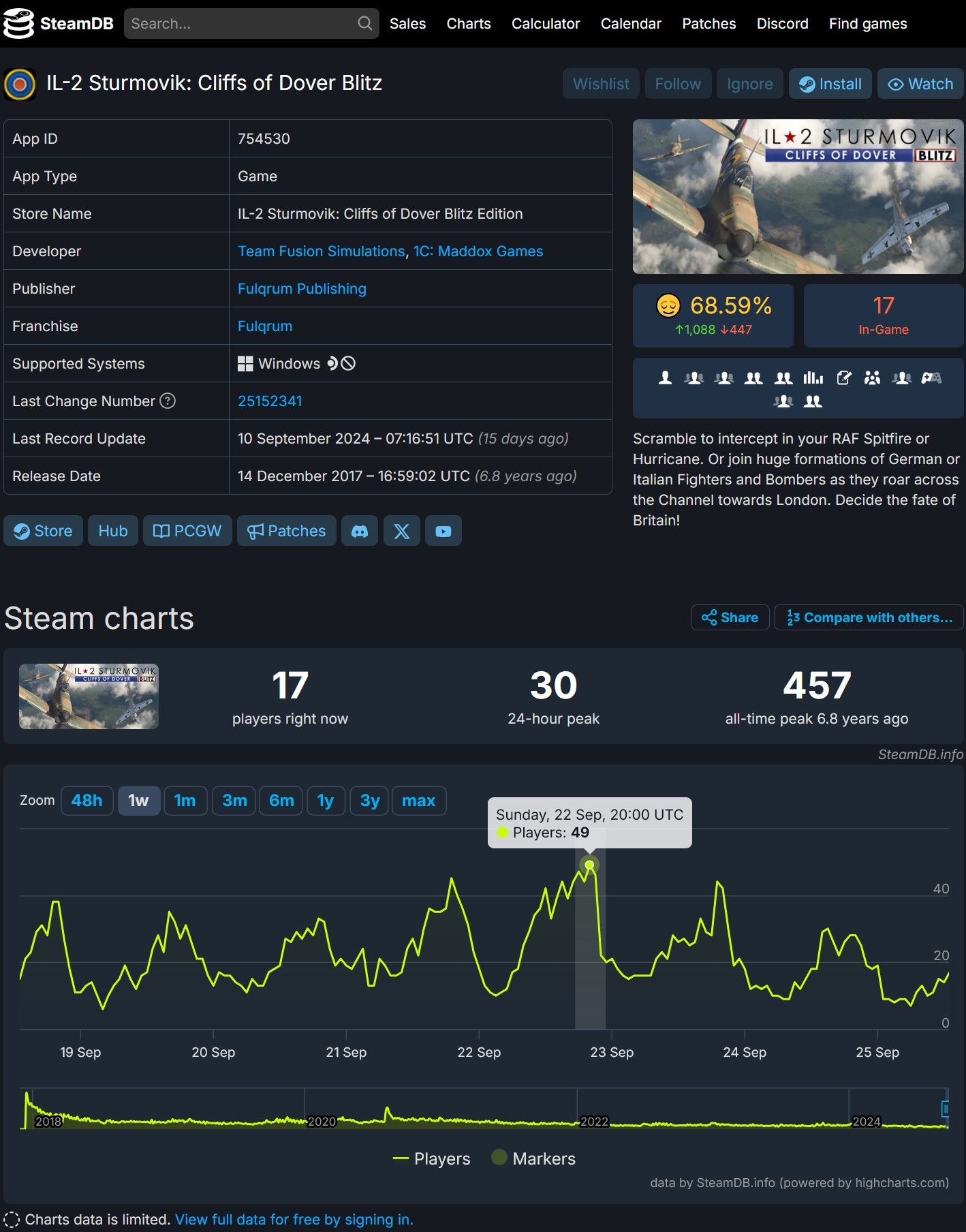 Mysticpuma Posted October 3, 2024 Author Posted October 3, 2024 (edited) 6 hours ago, Lorena_Scout said: so, everyone still have this version? https://www.youtube.com/watch?v=xcm_5L6yZIY work in progress guys, everyone already have the blitz and not the core version, this was a mod and now is a wip, have some patience pls Well, as you mentioned patience..... 8.5 years since VR was shown 5 years since Truesky was shown X years since variations.of Speedtree were mentioned. No news on the proposed release date of December for v6, for months (possibly a couple of years before it was named FAF). No screenshots of any of the new flyable content in game (not including a couple of Typhoon images). Intrinsically, it feels like the team can't be bothered to engage with its last remaining stalwarts (yes see the Steam chart posted above), and who the team will expect to be here when anything is released. To cold shoulder the community is really bad PR and just embarrassing from such a small team who really will want whatever is left of the community to purchase V6 and at least make all there years invested worth something. As it stands, once again, the community is left in Limbo, and I know Lorena and Buzzsaw as TFS members have both (obviously) seen this and other threads, yet, the only engagement we get is "Patience"? Would it not appear to any member of TFS, that is all that has happened and unfortunately, the good will the community had, has withered away and now there are just the last embers of the once raging fire left, and unfortunately it looks like rain is coming. Edited October 3, 2024 by Mysticpuma 2 6