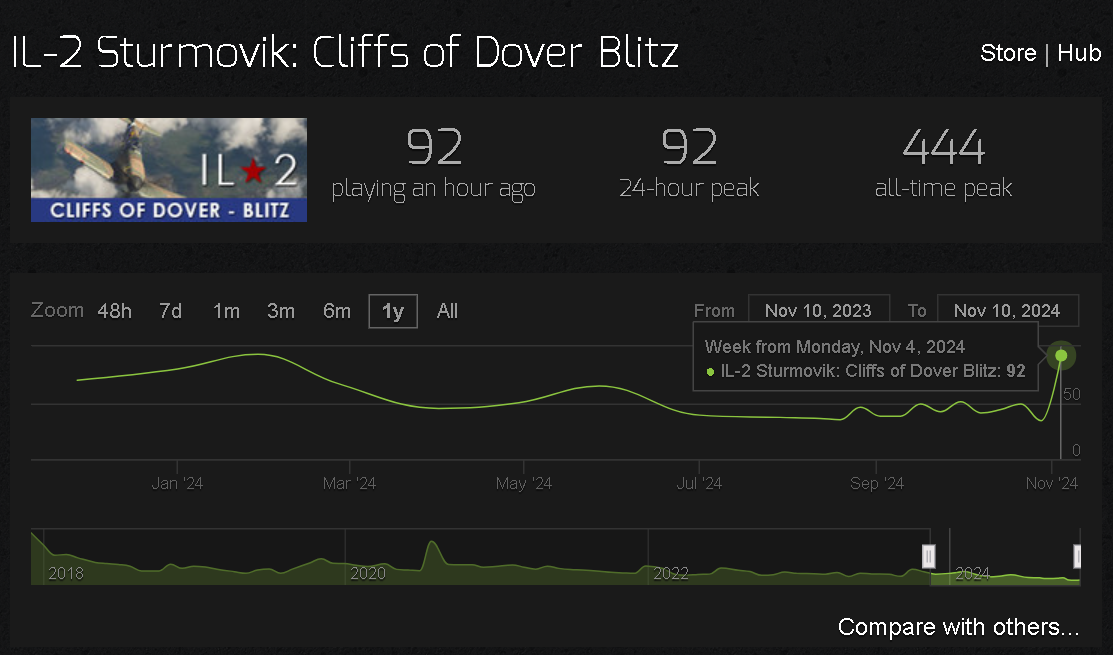 II./JG27_Rich Posted November 4, 2024 Posted November 4, 2024 Why I'm here is because...I like the other two but don't love them. I can't for the life of me think why 90% dumped Cliffs of Dover and went to the other two,VR and eye candy I guess. Now that I've learned more about why Great Battles is the way it is I can see why so many people flock to it. It's easier but not too easy and it looks good but by the looks of all the things coming up for this sim especially with the slide show "before after" in my opinion this one is going to look really good also and will be the only one of the three to have a flyable B-17 1
