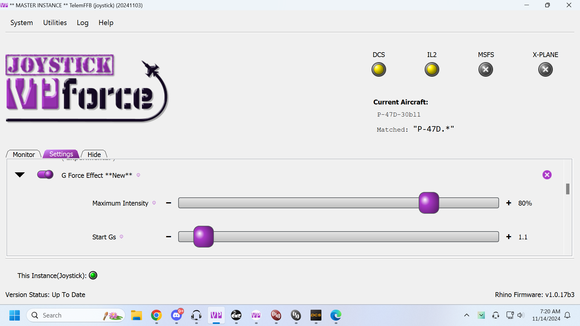 dgiatr Posted November 14, 2024 Posted November 14, 2024 30 minutes ago, SCG_motoadve said: Flight simmer for 25 years, real pilot for 15 years, bush flying, and warbird formation, aerobatics and dogfight simulations. I fly in VR, Varjo Aero, and a 4090, have MFG pedals, and many controllers, a few months ago got the VP Force Rhino, It has an extension and a Virpil Mongoose grip, I only fly the warbirds in DCS, and IL2, in short its fantastic, it is very immersive, you need to use it with Telem software which has the effects , and you can fine tune them to your liking. Did you guys know that many times dogfights are flown at the edge of the accelerated stall? Rhino has this effect, pull high Gs, stick gets stiffer, fire guns, you get the effects, you get hit also get the effects, gear , flaps, engine rumble everything is there, warbirds deserve FFB, they become even more realistic and immersive, highly recommended. Here are a link for the Rhino, a video of my real flying , Telem, and my setup. https://vpforcecontrols.com/ Indeed Rhino ffb is awesome you are right..the only downside I see so far is that as Youtch says here and probably he is right..in il2 you don't get your stick stiffer by speed augmentation but you have to pull some g's first and then you feel your stick to get stiffer. Take as an example a bf 109 in reality not in il2 which dives at a high speed of say 800 km/h so at that time the elevator and the stick has become very stiff without having to pull some g's first which doesn't happen in telemffb when playing il2. I don't think it's an issue of telemffb but a "missing telemetry" issue from il2 rather. In other sims like Msfs or Dcs ( can you verify that in Dcs since you have it? ) or Xplane ...I don't know exactly where it is to be honest, there is a feature in telemffb called " spring dynamic " which relates telemffb stick spring force vs plane speed which is exactly what it should be for the stick stiffness vs speed to be right I guess...unfortunately I cannot find such a feature in telemffb when I play in il2...can you find it in Dcs? Thank you. 1