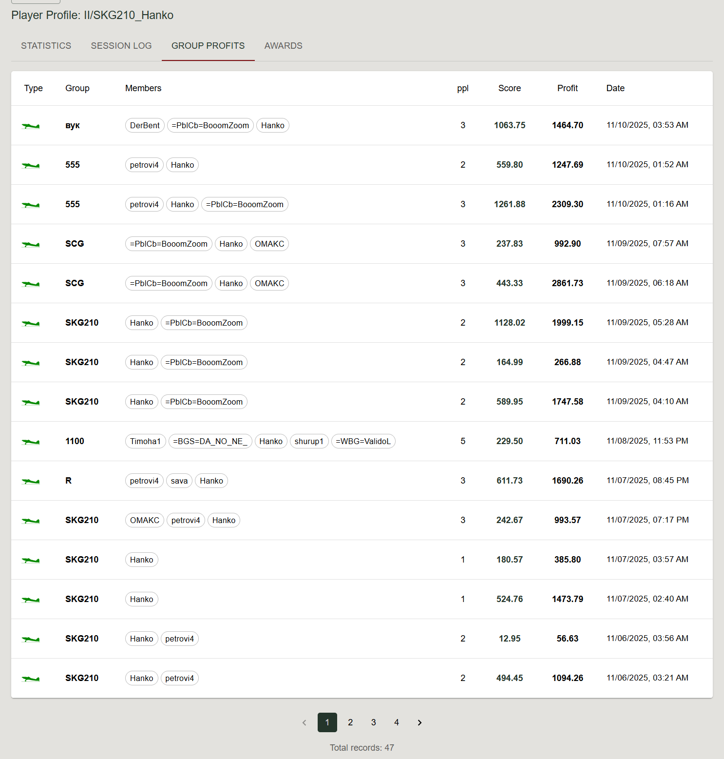 -DED-Zlodey Posted November 10 Posted November 10 16 часов назад, III/JG52_Speedwulf77 сказал: Hello, what has to be done to have "Group profit " shown . Do we(friends withs same tag..) have to register our squadname somewhere ? .. and if yes , please, where to do this ? thx Hi. Groups are not squads. When we make the squads, there will be other functionality. After all, players who are not members of a squad can participate in groups, but in general any allied player, even on a tank, even on an airplane. And you can get rid of a player at any time, just as a player can leave the group at any time. The groups are designed so that, for example, fighters can earn some income and improve their equipment when they simply cover their strike planes and do not encounter the enemy (this happens often). Well, in general, if a group flies, performs one combat mission, but someone has not returned from the task, he will at least receive some compensation from this departure. After all, this player could distract anti-aircraft guns and fighters and do some of the work that allowed the rest of the participants to complete the combat mission. You can see the income itself in the "GROUP PROFITS" tab Total income is the number of participants multiplied by points and balance A record is generated when the commander clicks the "Distribute rewards" button