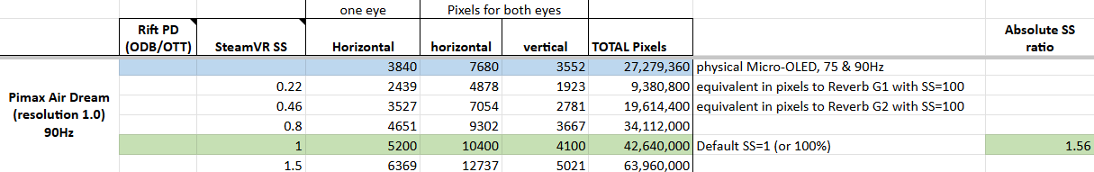chiliwili69 Posted September 20 Posted September 20 the nice thing is in minute 46, when they talk about the internal amount of supersampling which is needed for this new lenses and device geometry. At 1.0 resolution and 100% SteamVR the resolution is 5200x4100, which is much less than the needed by the Crystal Super 50PPD. So the ratio of pixels rendered/physical is 1.56, much less than the Crystal Super 50PPD (2.66!) Here the numbers: So it means that a 5090 (without any FFR, DFR, Upscaling, etc) can run that at 90Hz and adding a 130% supersampling. The bad thing is about the vertical FOV. They talk about that in minute 28. They measured the Horizontal FOV=112º (And per TestHMD app it is 115º) And they also measured the vertical FOV=88º (but per TestHMD app it is 113º, weird!!) I love horizontal FOV as much as vertical too. The great Index had HFOV=108 and VFOV=109. The reason I didn´t buy the Aero was simply because it had VFOV=88 1