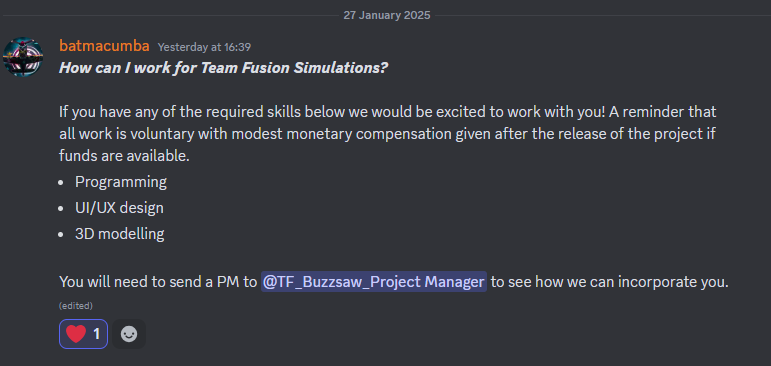 Team Fusion Buzzsaw Posted January 28 Team Fusion Posted January 28 People who are interested in joining need to contact myself. 2