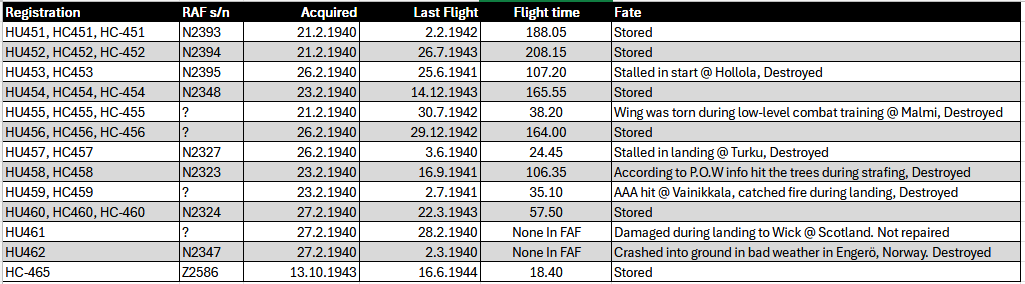 Hanu Posted March 11 Posted March 11 (edited) Yes, thats about it. November '42 LeLv 6's Chaikas was merged into LeLv30 and Chaikas were used untill 20.3.1944. But Hurricanes were not in use anymore during '43-'44 like migmadmarine already said. Practically their time ended during 1943 when they were stored My collected notes about Hurricanes: HC-465 was Mk. II, others Mk.I's Edited March 11 by Hanu 1