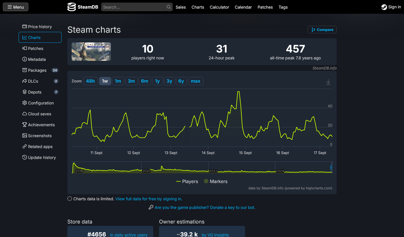 DD_Arthur Posted September 17 Posted September 17 2 hours ago, paul_leonard said: Careful how you interpret these charts. My read is that if you look at the 3 month chart it indicates an hourly average of 35 players in-game across each the 24 hours of the day which would imply 850 players per day if they each played for an hour. Depending on what you assume about how many hours a person plays per week, say 2 hours per week, then there would be about 3,000 regular players any given week. That is more than the 10 in your time zone when you took the above image. That's a very 'Team Fusion' interpretation of Steam's figures and a complete misreading of them. Semor obviously took his snapshot around midday euro time. Ten players globally is now an average figure for this time of day. Yes, these are global figures, not by timezone. Try these for size; https://steamcharts.com/app/754530 If you look down through the years you can see how TFS 'leadership' destroyed the player base by consistently over promising and under delivering. We have the much heralded TFS 4.5 'Blitz Edition' update released at the end of 2017 after an enormous wait and enormous hype. Such was the communities reaction "Is that it?" the player base had more than halved within two months and the steady decline set in. Onto August 2020 and the release of Tobruk. At last, after seven years of 'it's just around the corner!' some actual new content was produced. As you can see, the euphoria lasted around a month before the steady decline set in again.... ....and here we are, on very familiar ground. No news is...no news and the dead hand of TFS leadership steers the boat onwards to oblivion. 3