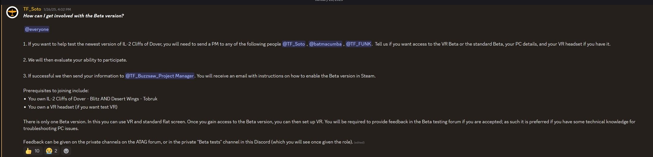 Dagwoodyt Posted August 22 Posted August 22 2 hours ago, Dutch2 said: Great news, the link is restricted, how to join the VR beta? Did rebuy the whole Clod series in the hope to get the VR beta permission but not any reply back from mr @Buzzsaw at the ATAG pm. Might be that many are called...😉 I wonder whether the contact list is still accurate🤔 1