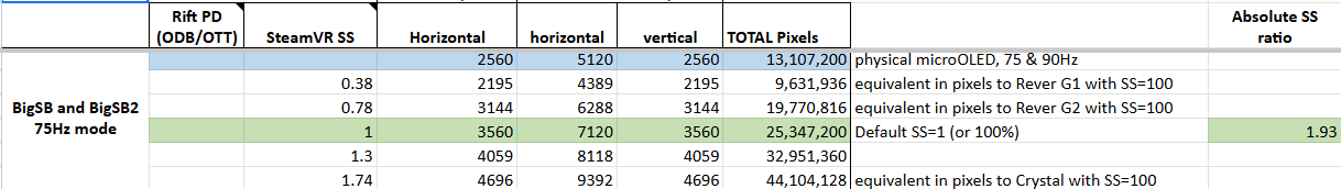 chiliwili69 Posted September 26 Posted September 26 As usual with every new headset I just wanted to see what a camera shoot to avoid the typical placebo effect of new devices. I wanted to compare the three headset rendering the same amount of pixels: 44 million, which is the default resolution of the Crystal Light QuestLink settings: 72Hz, SteamVR at 480% resolution, this is 4522x4978 per eye, so 44 Million pixels. BSB2 settings: 75Hz, SteamVR at 174% resolution, this is 4672x4672 per eye, so 44 million pixels. Pimax Crystal Light: 72Hz, PimaxPlay custom resolution (it is 1.0) with SteamVR at 100%, this is 4332x5124 per eye, so 44 Million pixels. 1