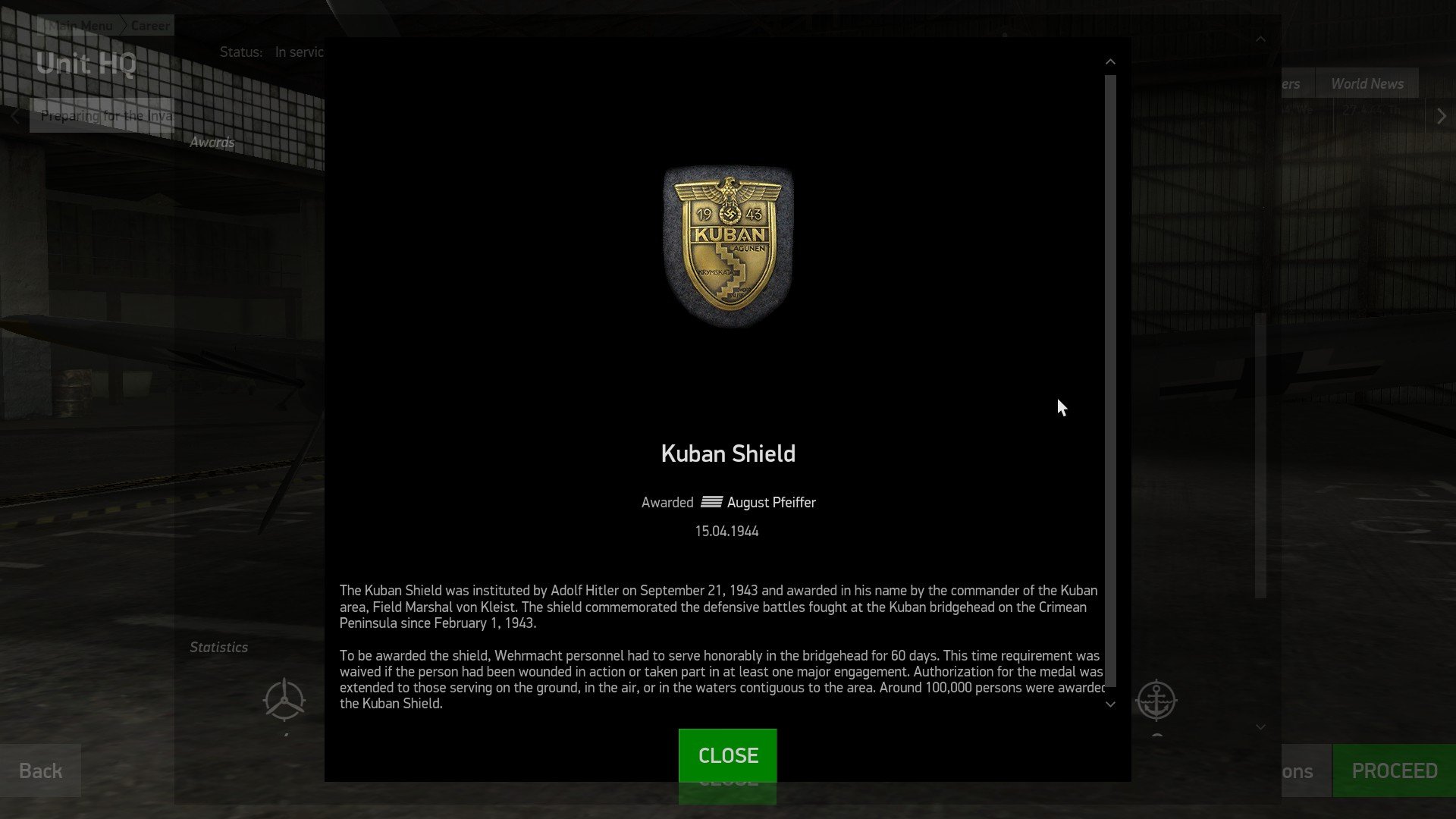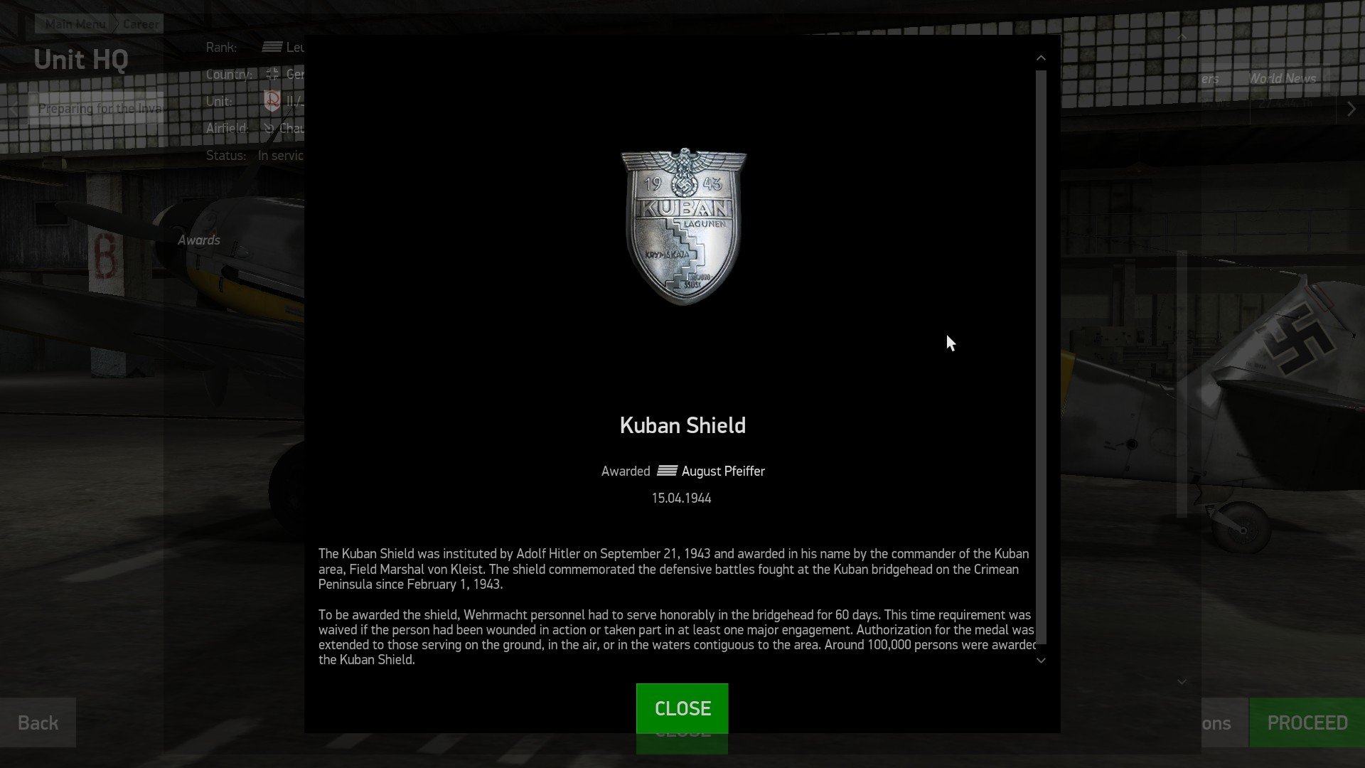 Aurosa Posted Monday at 04:06 PM Posted Monday at 04:06 PM (edited) If you want to read why it needed to be fixed, then you can do it here (my topic): CLICK It is advised to use this mod with another one that you can get here: CLICK ([MOD] Hakenkreuz (Swastika) on Awards and Flags). 1st install the Hakenkreuz (Swastika) mod, if you don't have it already. 2nd overwrite files in 201030 folder, with files provided here. 3rd enjoy historically and period accurate Kubanschild in Luftwaffe variant. I tested it, and it works, though I'm not sure how preview might look, as it is quite small. Shield might look a bit smaller, and it is in fact smaller than the one that was in the game, but the overall size of it is of the same size. Preview also included. Spoiler 201030.zip Edited Tuesday at 01:57 PM by Aurosa
