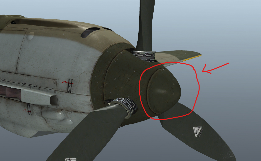 TP_Fritz Posted October 22 Posted October 22 I've been using the new paint template for the Bf109E-4, and I cannot figure out how to get the propeller nose cone to not cover the nose cannon. I've seen a couple of skins where the cannon isn't covered, and I've compared their DDS file with my own to try to find where this annoying thing is, but I've not located it. Can anyone shed some light on how I can avoid this? This is what I'm getting: ... and this is what I'm trying to achieve but can't seem to figure out how to: