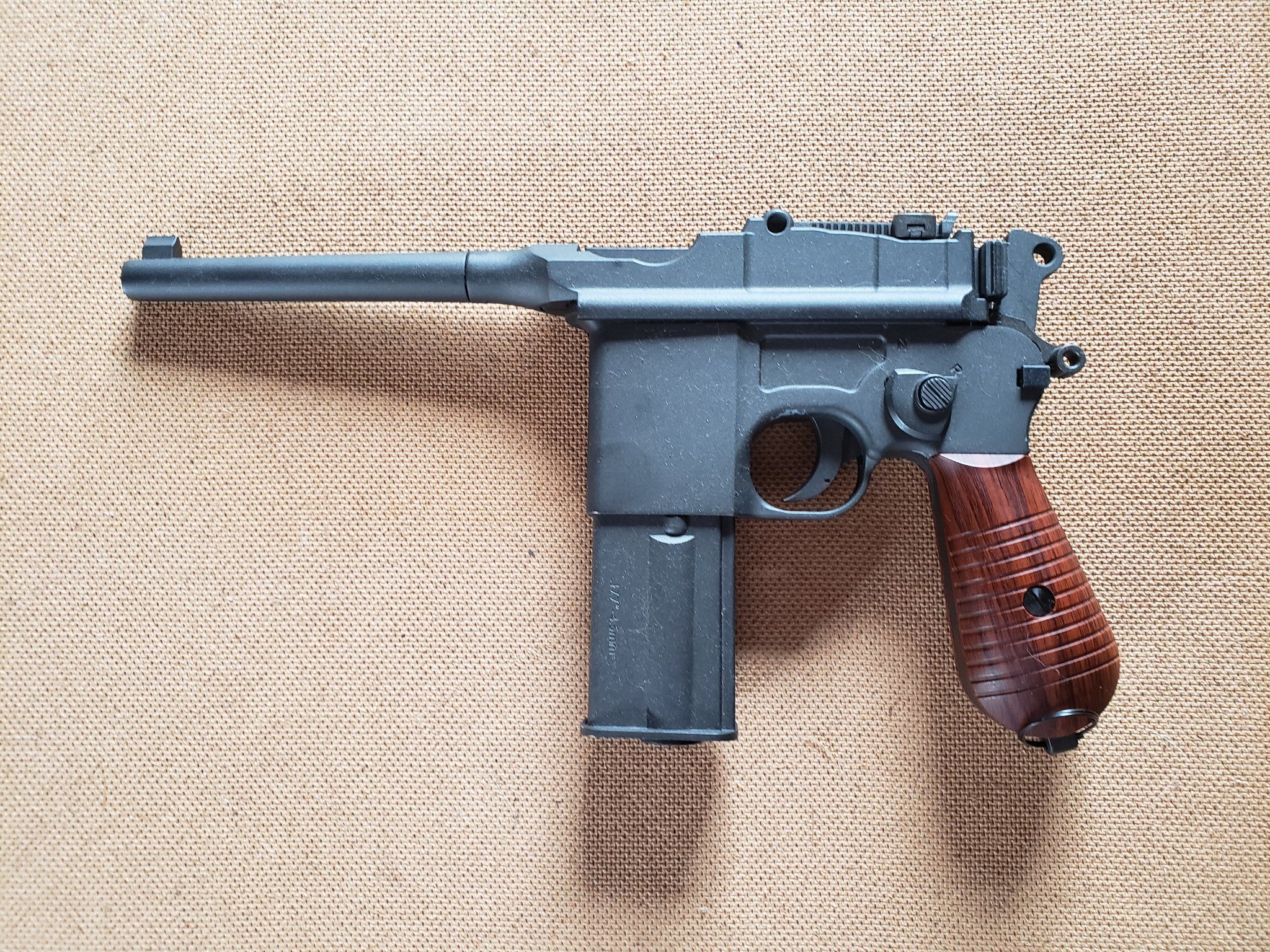 Todt_Von_Oben Posted Monday at 10:55 PM Posted Monday at 10:55 PM Well, there actually was a fully-automatic version of the C96 called the M712 Schnellfeuer produced from 1932 to 1938. I have a CO2-powered version with the selector switch. Doesn't have much power, and the gas is gone after three short bursts. Too futuristic for Flying Circus, I'm afraid; but still. it's a lot of fun for target practice. BRRRRRRP! 😎
