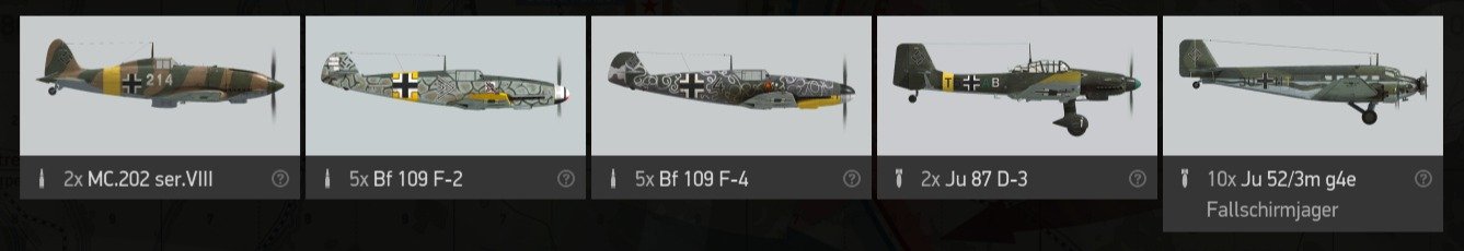 GenMarkof007 Posted November 12 Author Posted November 12 (edited) Tanks and Planes set for the Battle for Komesht-Tyrg! ---- AAS-SCG IL-2 Tank Crew PvP Event - Battle for Komesht-Tyrg - Sept. 1942. This mission will be played on the Northwest sector of the New map Odessa. ---- German (Finnish) Tank Set for this Battle! Not shown, 2 x Tiger, available only if the side mission is completed. *These tanks are unlimited. The Sd.Kfz. 10/5 Flak Truck is limited to 5 for the entire mission. * The Tiger tank will respawn every 35 minutes after getting the side mission done. German (Finnish) Plane Set for this Battle! Numbers are limited (*some are limited to 2 or 5 6 planes per fighter type), and only 10 Para Drop planes are available. * Some Payloads may be locked... only small bombs are available in this mission. * IMPORTANT: For the Stuka Ju 87, please drop the S250 bomb after takeoff (keep the 4 x 50 bombs). This is mandatory. Thank you! * The planes will respawn every 30 minutes. The Para Drop plane is limited to 10 planes. Russian Tank Set for this Battle! Not shown, 2 x Su-152, available only if the side mission is completed. *These tanks are unlimited. The Gaz-MM 72-K Flak Truck is limited to 5 for the entire mission. * The Su-152 tank will respawn every 35 minutes after getting the side mission done. Russian Plane Set for this Battle! Numbers are limited (*some are limited to 2 or 5 6 planes per fighter type), and only 10 Para Drop planes are available. * Some Payloads may be locked... only small bombs are available in this mission. * The planes will respawn every 30 minutes. The Para Drop plane is limited to 10 planes. *Important: The I-153 is only available if you have bought the latest module, IL-2 Odessa - Leningrad. ---- Cheers, GenMarkof007 ---- Edited November 23 by GenMarkof007