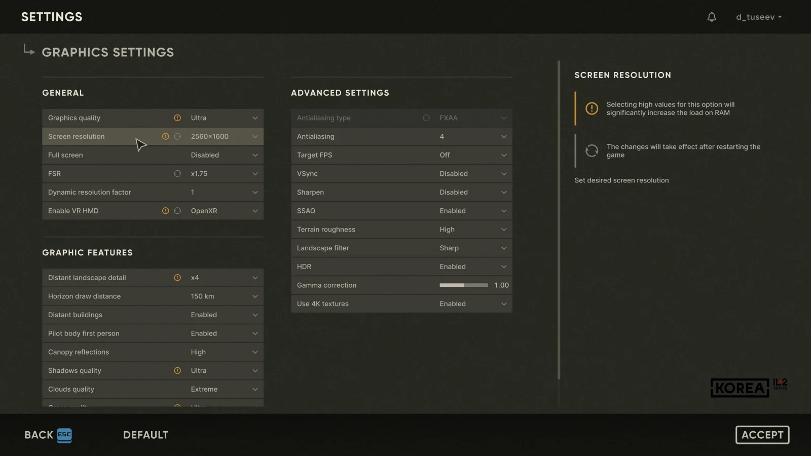 Aapje Posted Friday at 07:56 PM Posted Friday at 07:56 PM To be honest, the settings changes seem a bit meh. Very similar to the old settings. No DLSS is a big bummer. Would really like to try DLSS 4 in IL-2 given how much it helps many VR players in a competitor combat flight sim. Native OpenXR is very nice, though. On the other hand, I never had huge issues with the old settings and keeping it similar is better than an innovative new GUI that is actually worse, like a certain competitor flight sim did for their 2024 early access release. The overall map looks very busy now, although this is almost certainly due to how hilly Korea is. It's probably better in the close up view and should be better in future modules with less mountains. I wonder if there is a solution to the overlapping GUI elements that were often an issue on the GB map if lots of stuff was close together. For example, overlapping waypoint text, so it was impossible to read the information of either waypoint. Or the impossibility to see exactly what ground units died, when a bunch of them died close together. PS. There is an error in the keymapping screenshot, one of the keyboard assignments has the Russian word for keyboard next to it. 1