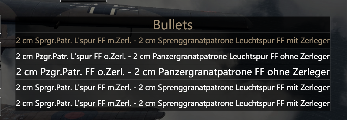 FTC_Rostic Posted November 15 Posted November 15 5 minutes ago, MoeFactors said: It seems the 4th, 5th, and 1st rounds are indeed the same type. IDK how much original CloD build different to BLITZ. But according to original game resources dump "$homeRel\parts\bob\objects\weapons.ini" containe these lines: // 0 = Bullet Oerlikon20x80RB_Panzerbrandgranate // 1 = Bullet Oerlikon20x80RB_Panzerbrandgranate_Phosphor // 2 = Bullet Oerlikon20x80RB_Panzerbrandgranate_Elektron // 3 = Bullet Oerlikon20x80RB_Brandsprenggranate // 4 = Bullet Oerlikon20x80RB_Brandgranate I use this to get resources: http://junk.kegetys.fi/il2cod_sfsmod11.zip Found there: https://forum.fulqrumpublishing.com/showthread.php?t=36586