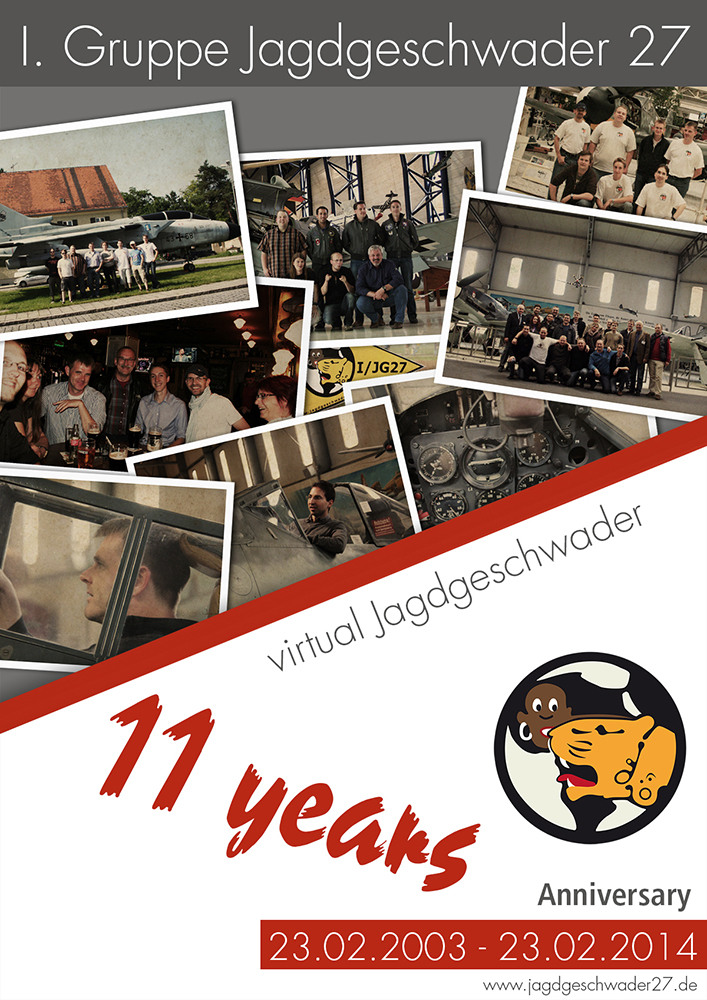 I/JG27_Zimmi Posted February 23, 2015 Author Posted February 23, 2015 12 years ago, pilots of the I. Gruppe Jagdgeschwader 27, entered the virtual battlefields for the first time. Thanks to all of your pilots, friends and opponents. I'm looking forward to another 12 years of aerial battle over Stalingrad, Moscow, .. and probably Northern Africa I can definetly say that those 12 years were unforgettable and also quite imprinting...which can be positive or negative as I had to experience a few days ago.. ATC obvisously doesn't like it if you confirm an instruction by "Vitamine" At least I keep myself under control, not diving down on that departing cessna, shouting "Pauke, Pauke"